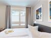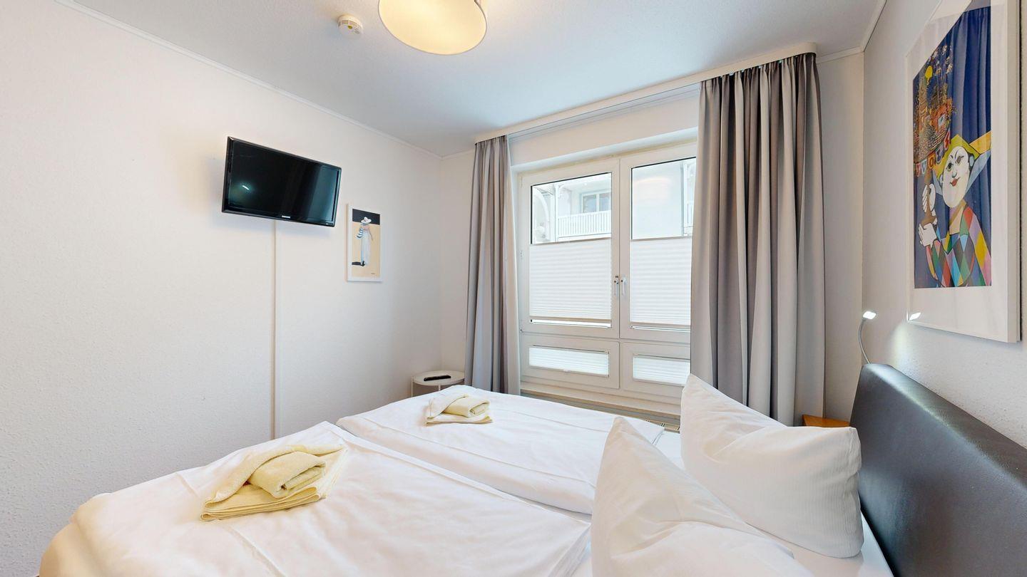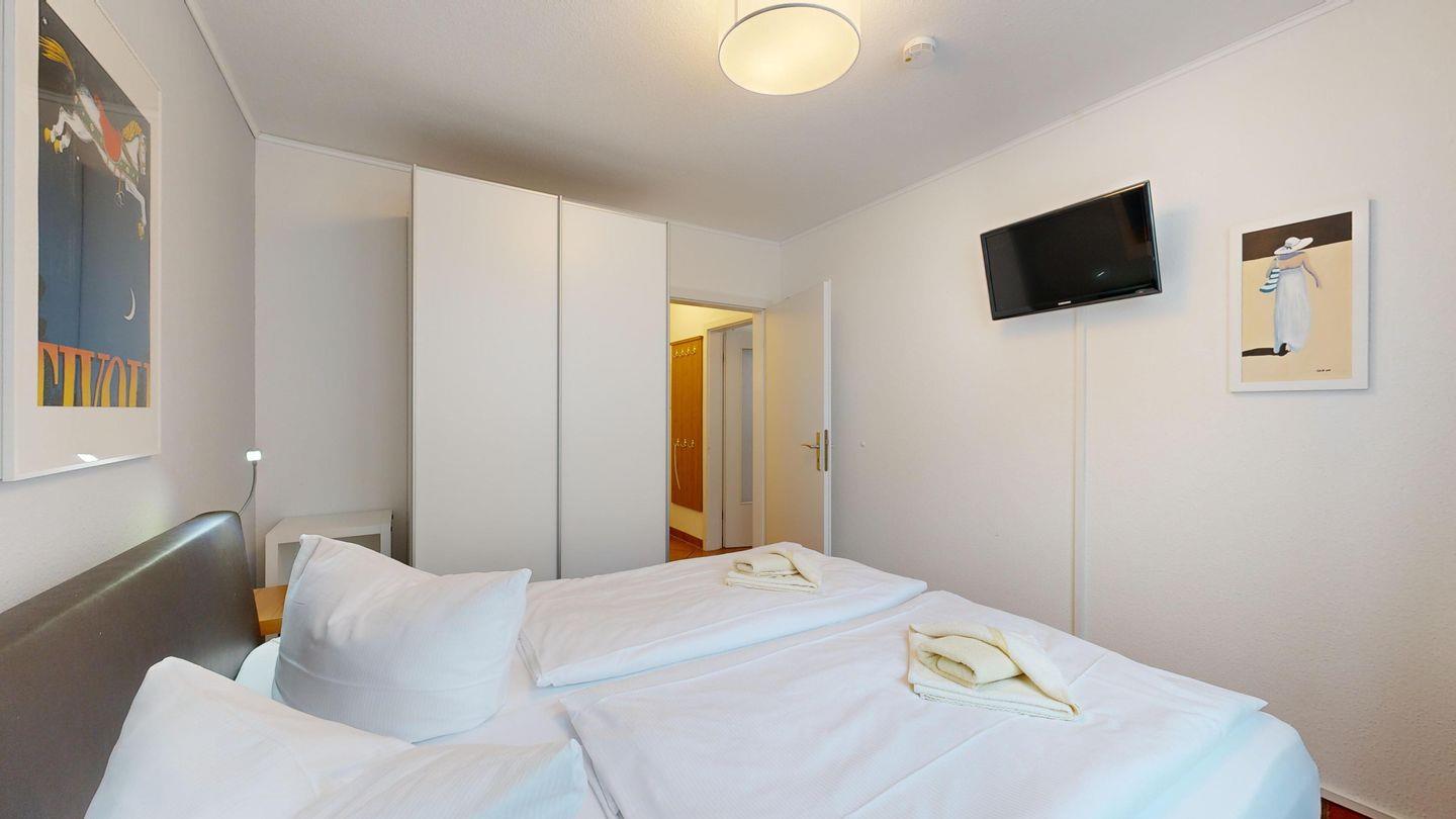 * 1 Schlafzimmer mit einem Boxspringbett (Doppelbett) und TV