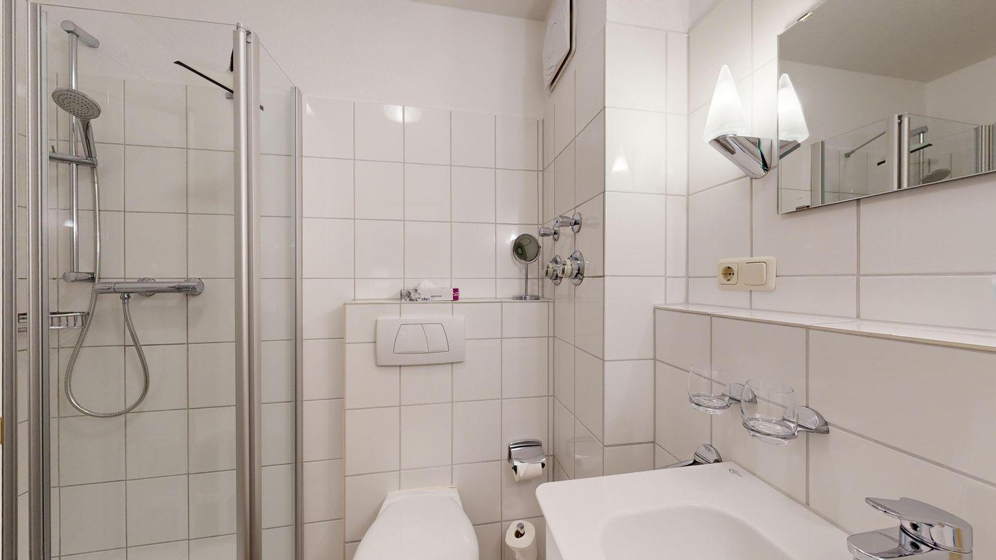 * Dusche (Tiefeinsteiger), WC, Haartrockner