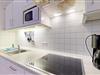 * Küchenzeile mit Spülmaschine, Ceranfeld, Mikrowelle, Kaffeemaschine, Toaster und Kühlschrank mit Gefrierfach