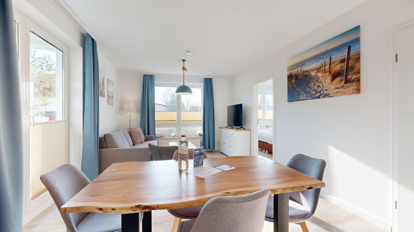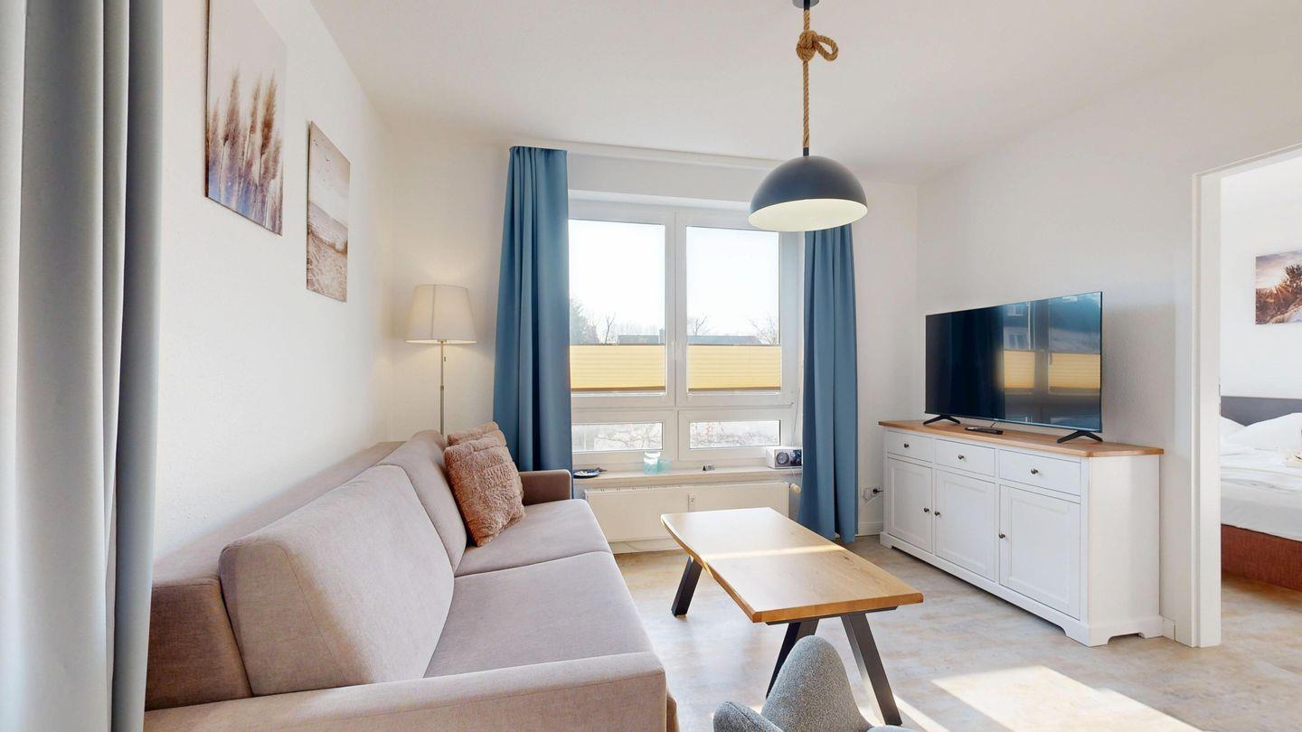 * Wohnzimmer: Couchgarnitur (Schlafgelegenheit für 2 Personen), Kabel-TV, Radio, Internetanschluss-WLAN, Esstisch