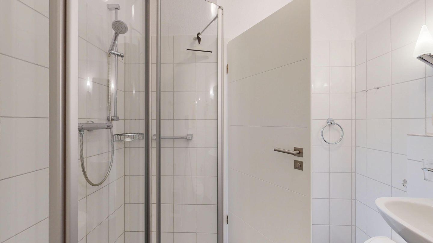 * Dusche (Tiefeinsteiger), WC, Haartrockner