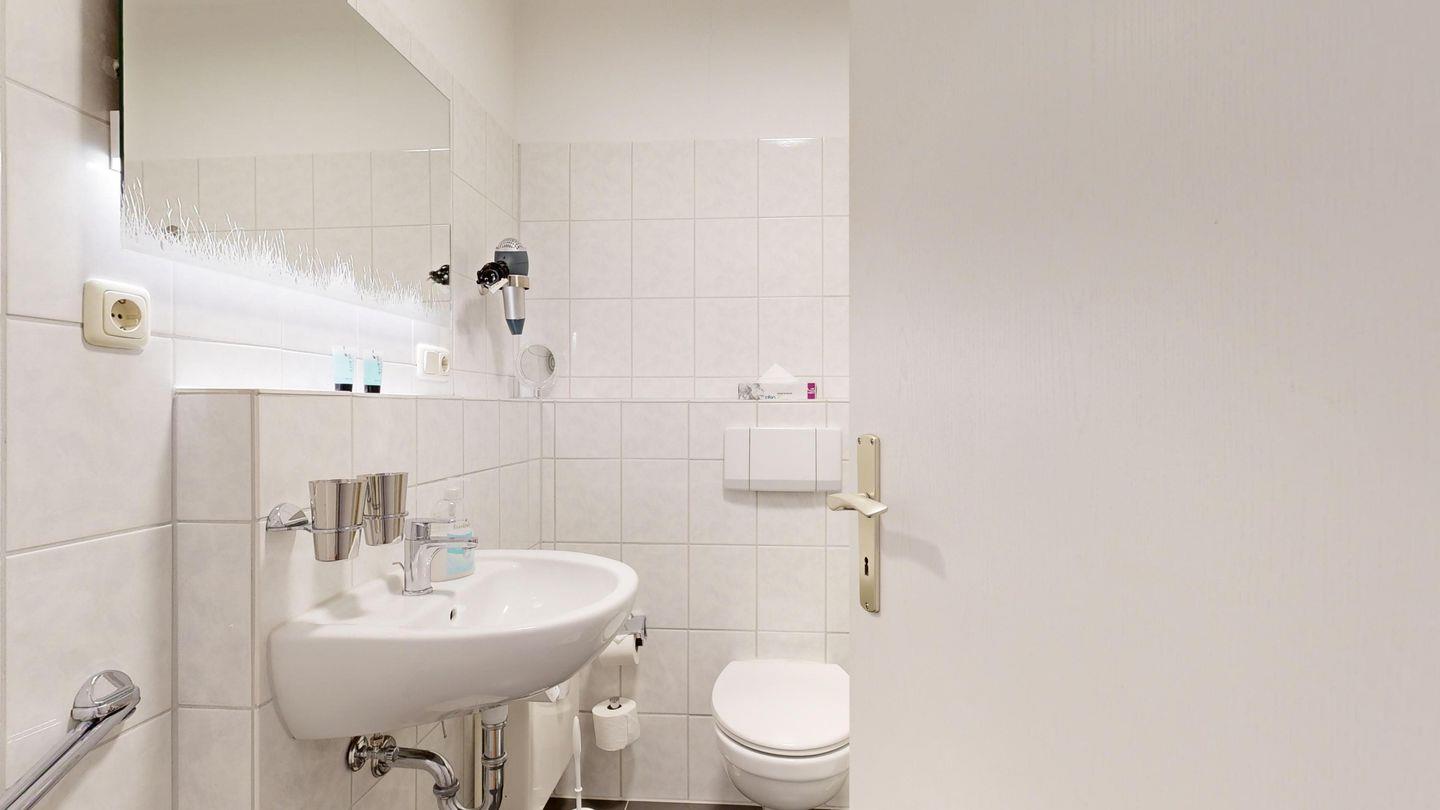 * Dusche (Tiefeinsteiger), WC, Haartrockner