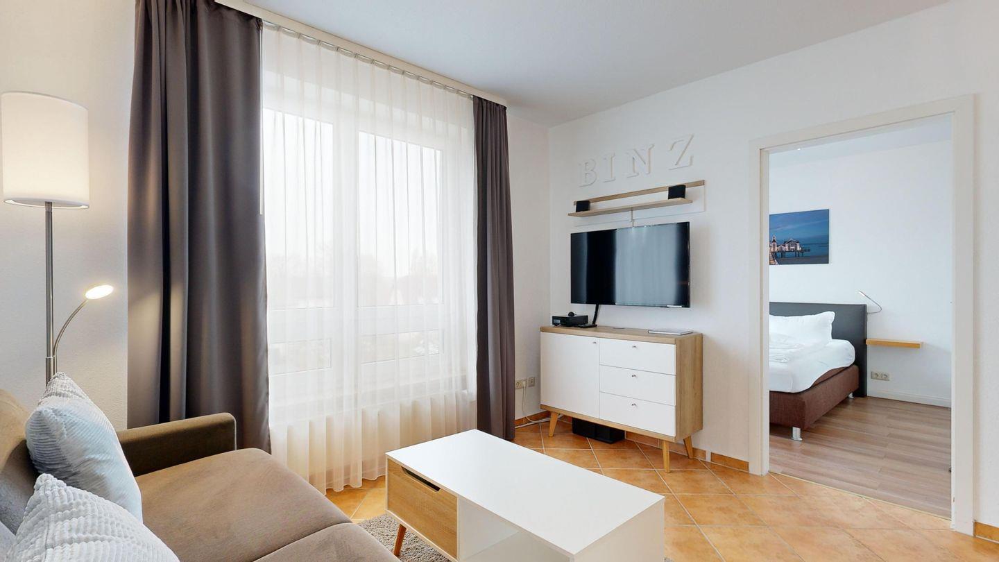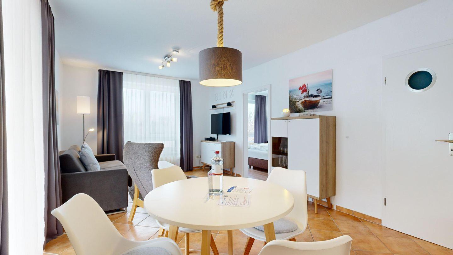 Ruhiges Appartement in Binzer Sterne mit Balkon, WLAN, Sauna und Nähe zum Granitzwald für entspannte Tage abseits des Trubels.