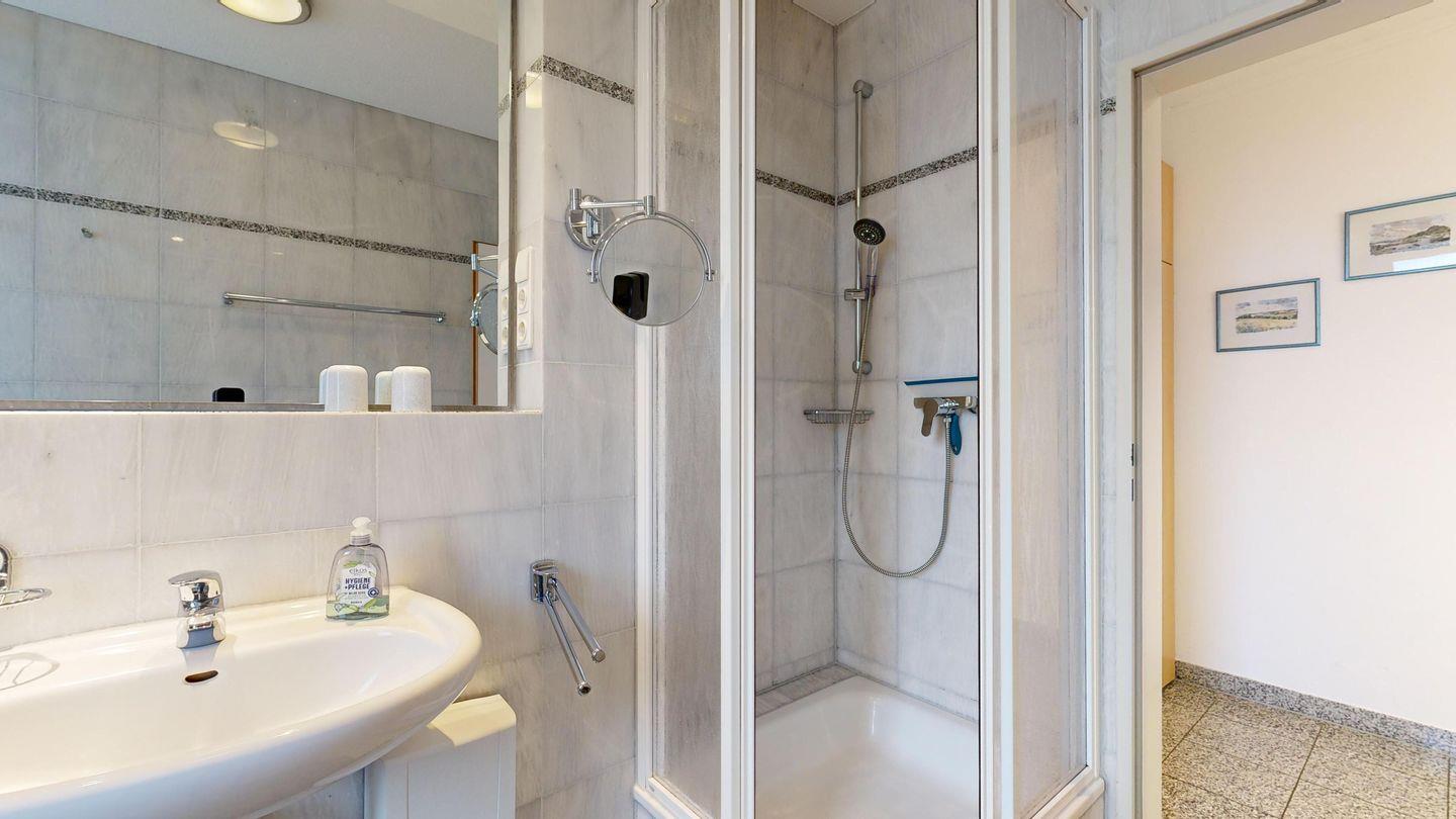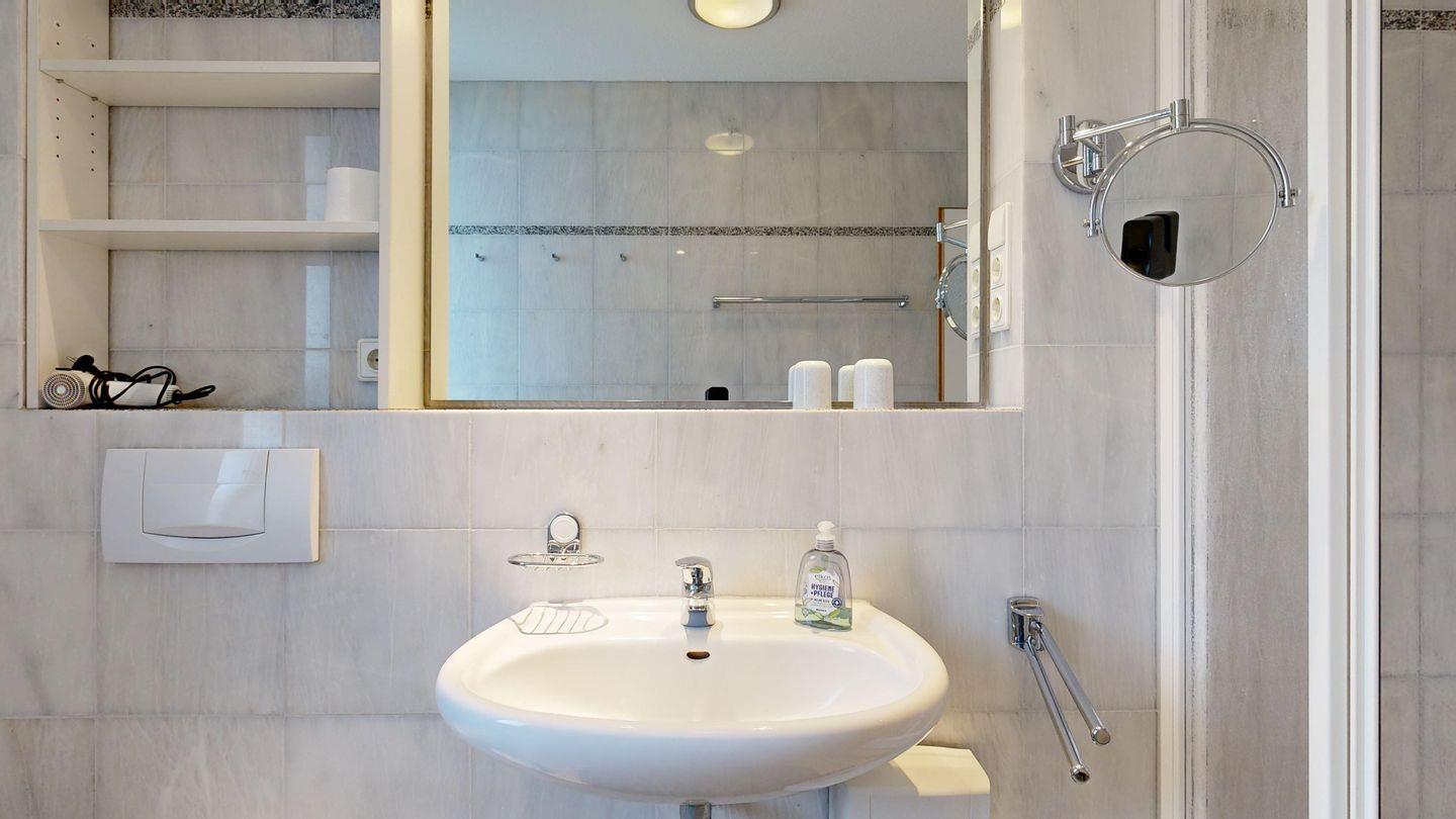 * 1 Badezimmer mit Dusche, WC und Föhn