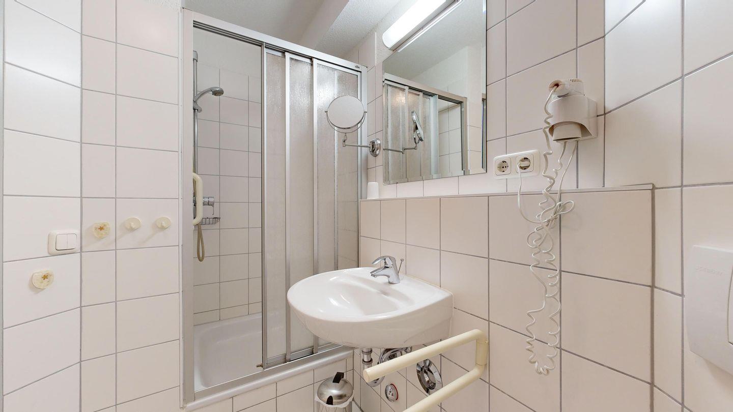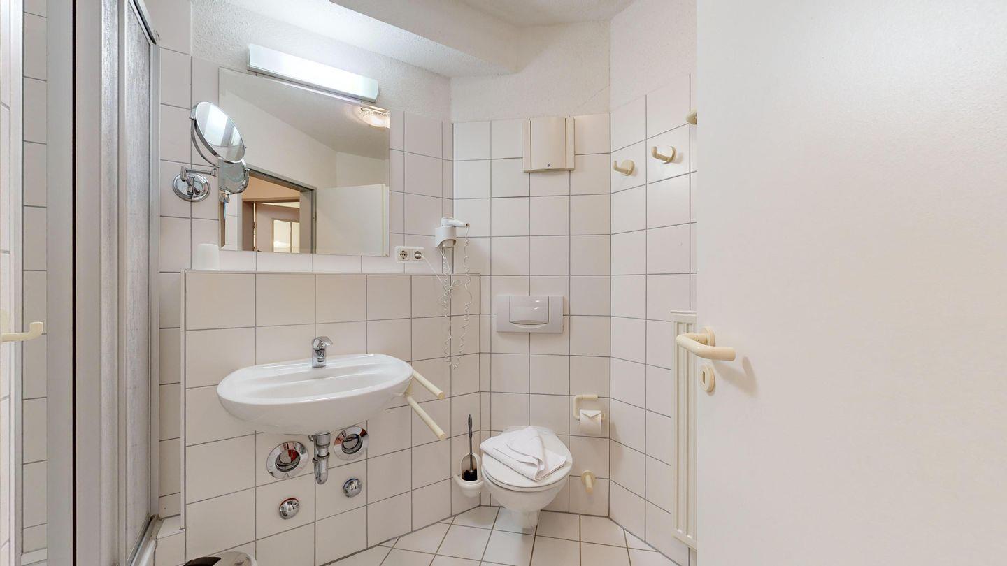 * 1 Badezimmer mit Dusche, WC und Föhn