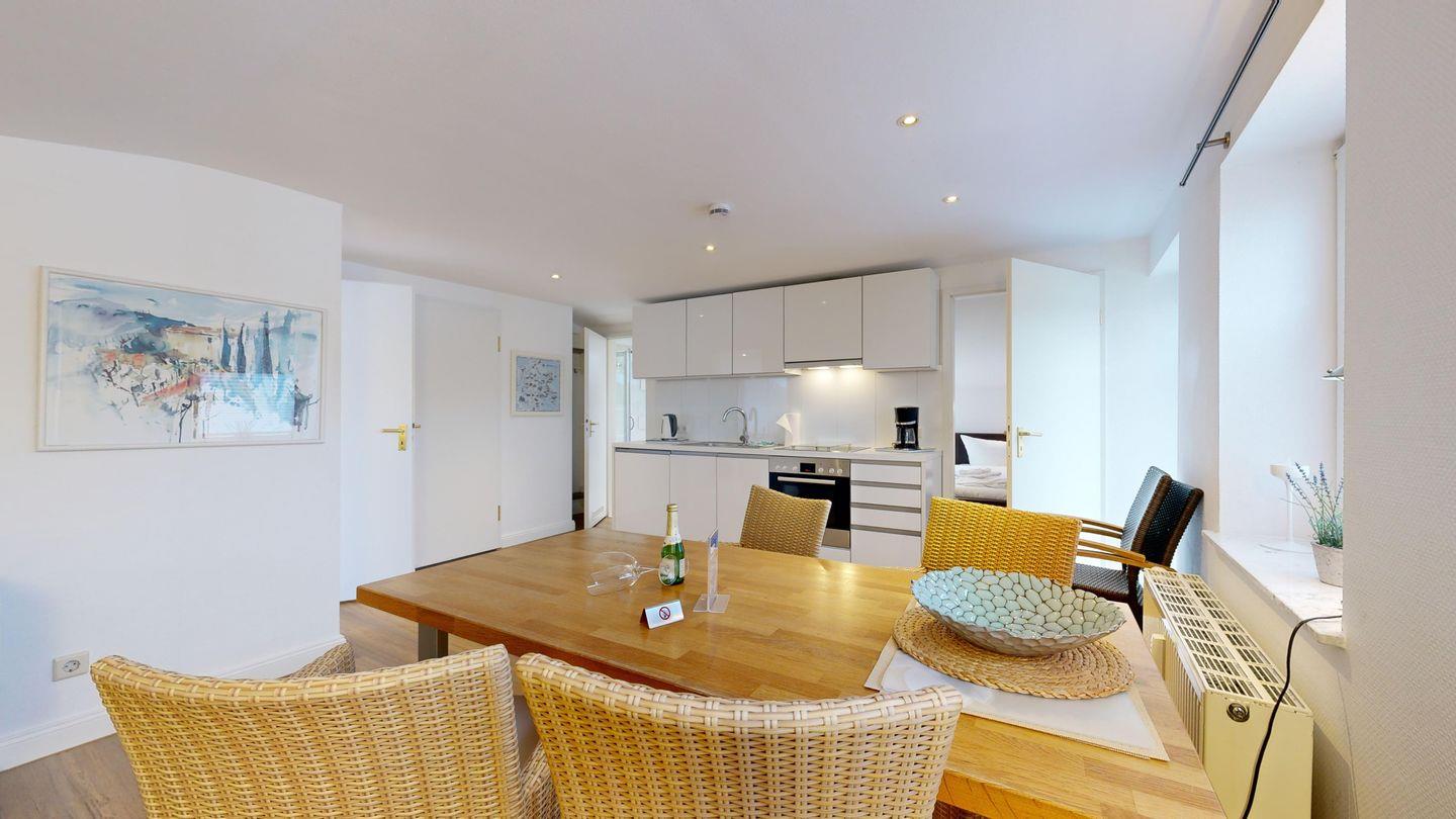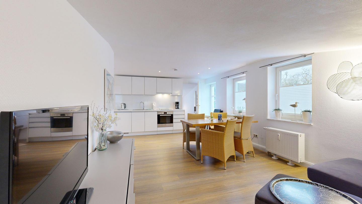 Genießen Sie unvergessliche Stunden in direkter Strandlage – auf Ihrem sonnigen Südbalkon können Sie den Tag mit einer frischen Brise beginnen. Eine stilvolle Küchenzeile lädt zum gemeinsamen Kochen ein, während die moderne Einrichtung zum Entspannen einlädt. Ihren eigenen Strandkorb erwartet Sie gleich am Meer – Urlaubsfeeling pur!