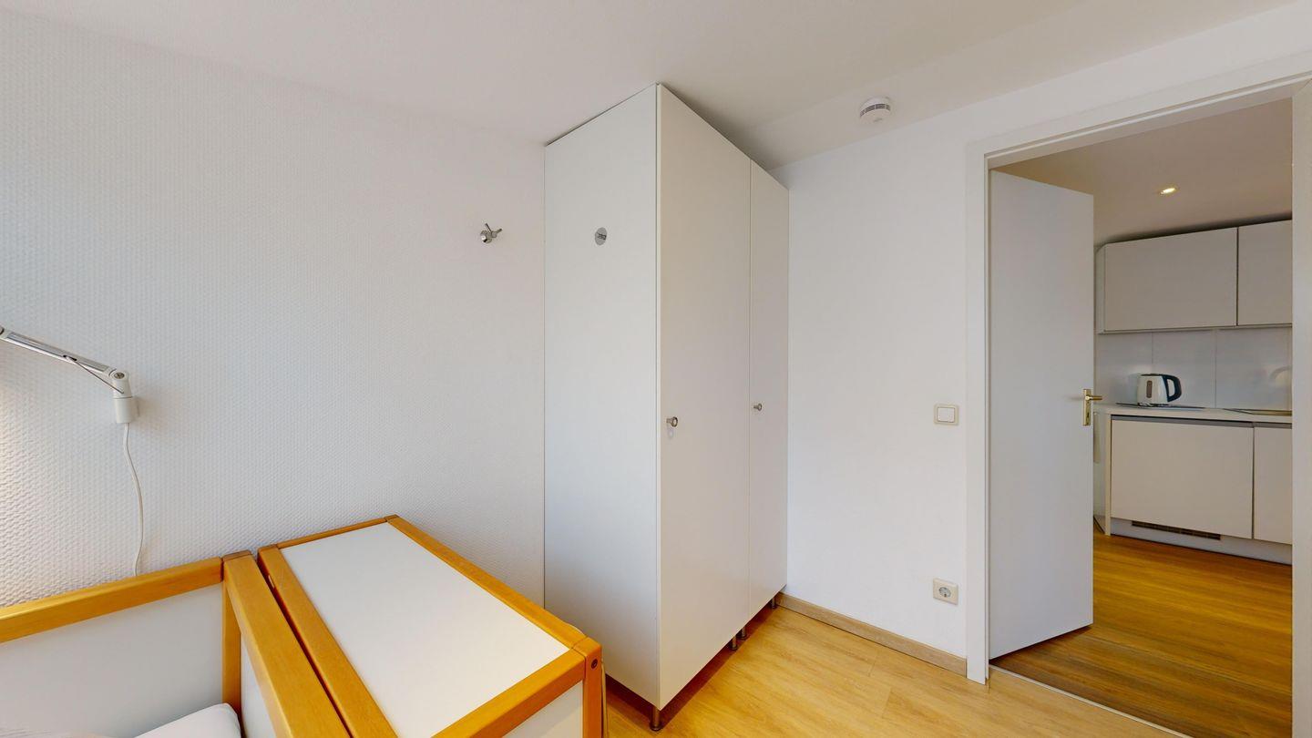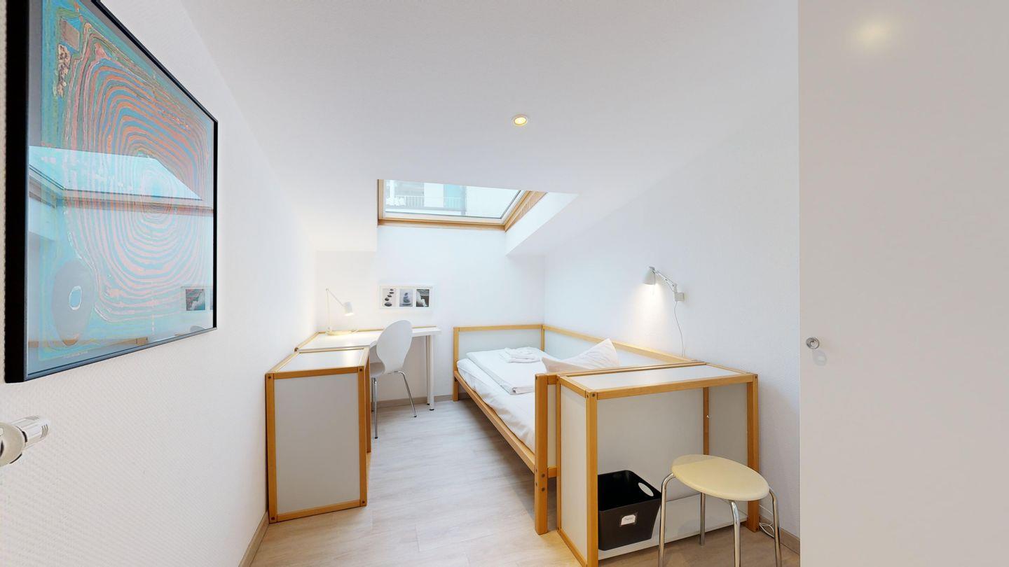 * 1 Schlafzimmer mit einem Einzelbett, Kleiderschrank, Dachschrägen