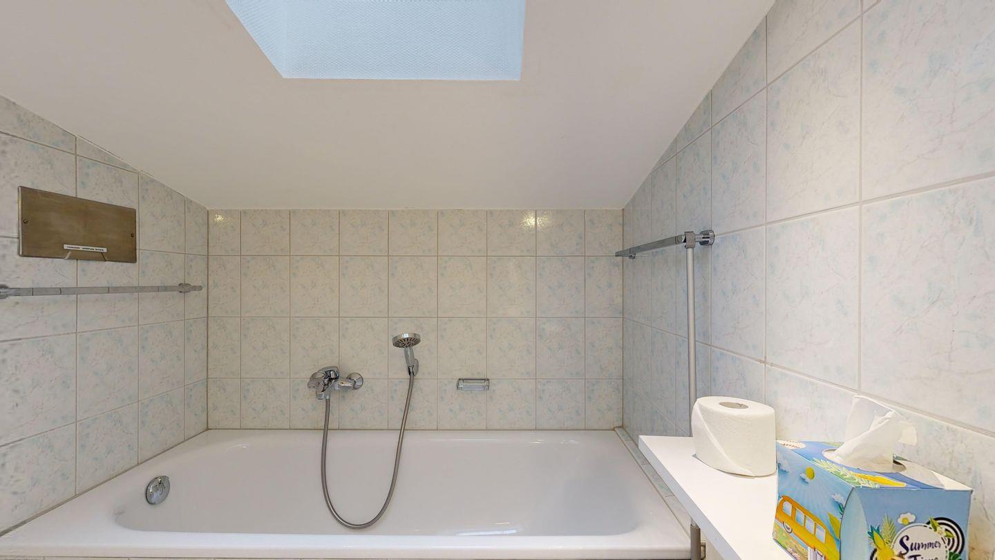 * 1 Badezimmer mit Dusche, Badewanne, WC, Föhn