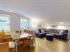 * Wohnzimmer: Moderne Couchgarnitur, Kabel-TV, W-LAN-Internetanschluss, Esstisch mit Blick Richtung Kurmittelhaus, hochwertige Küchenzeile mit Spülmaschine, Ceranherd, Backofen, Wasserkocher, Kaffeemaschine und Toaster