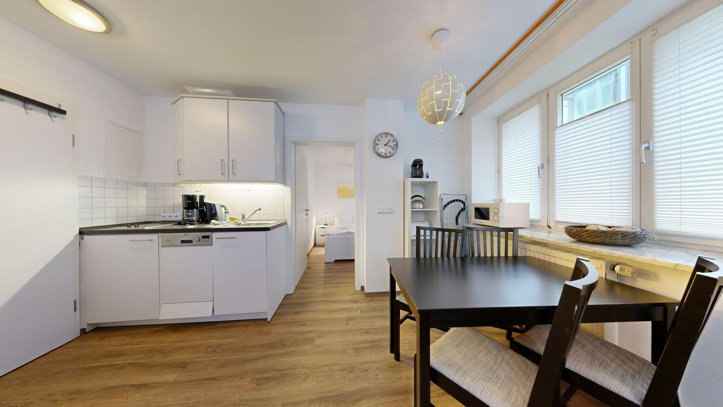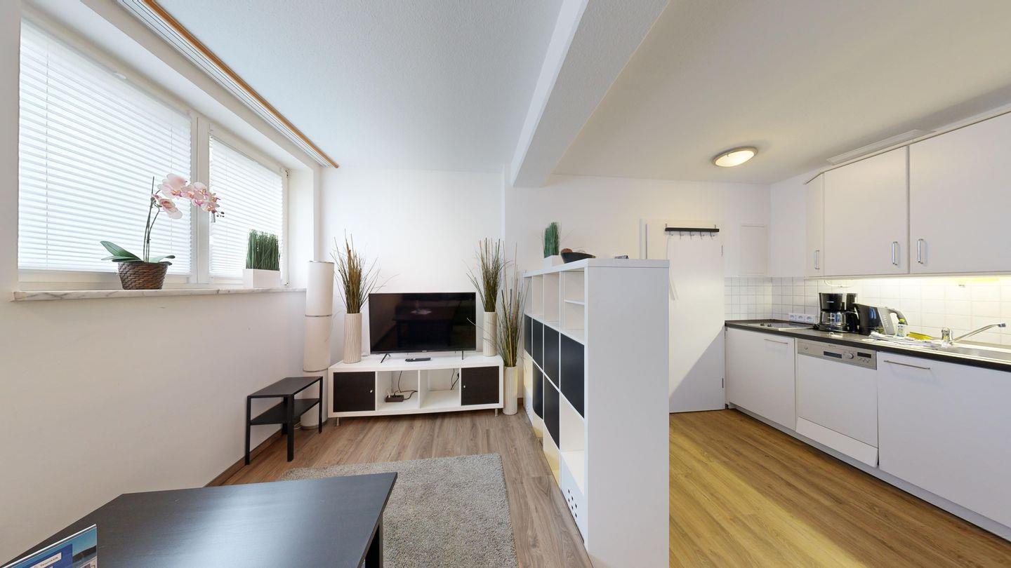 Perfekt für Paare oder Singles: Diese kompakte Wohnung liegt in erster Strandreihe und bietet bestes Preis-Leistungs-Verhältnis. Die moderne Küchenzeile, das gemütliches Schlafzimmer und der schöne Wohnbereich punkten mit Komfort und Charme – inklusive Zugang zu einer traumhaften Dachterrasse und der Sauna im Haus.