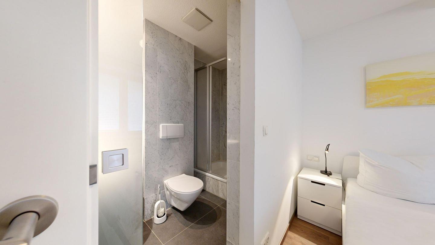 * 1 Badezimmer mit Dusche, WC und Föhn