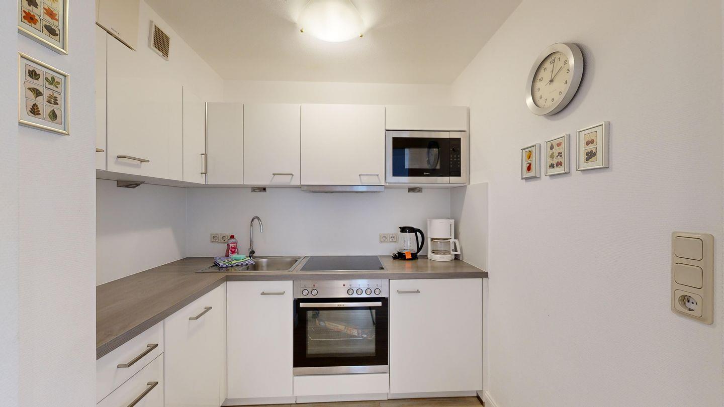 * Küche: Moderne Küchenzeile, E-Herd mit Backofen, Spülmaschine, Mikrowelle, Kaffeemaschine, Toaster, Wasserkocher