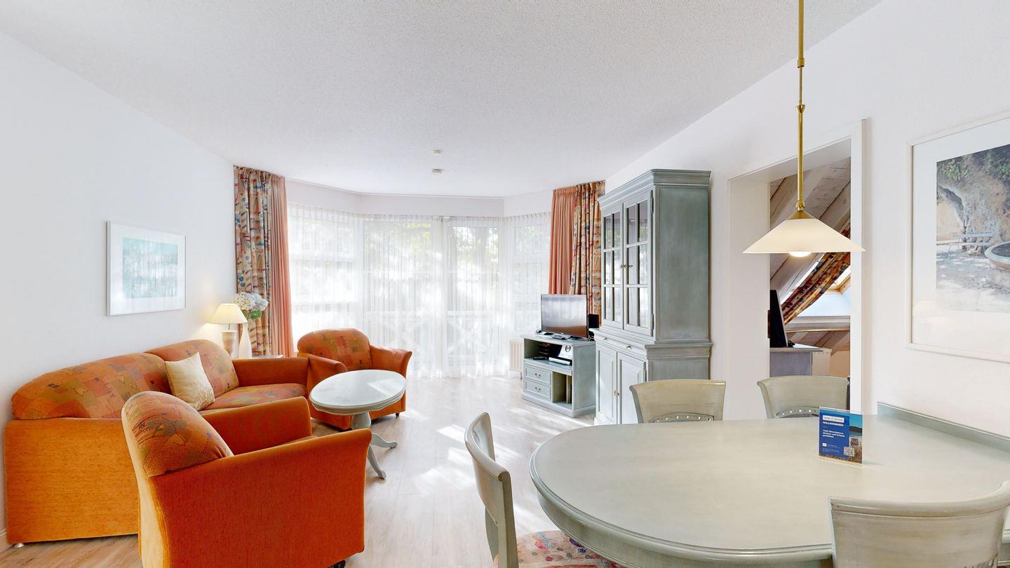 * Wohnzimmer: Couchgarnitur, Essplatz, Kabel-TV und Internetzugang (WLAN oder Kabel möglich)