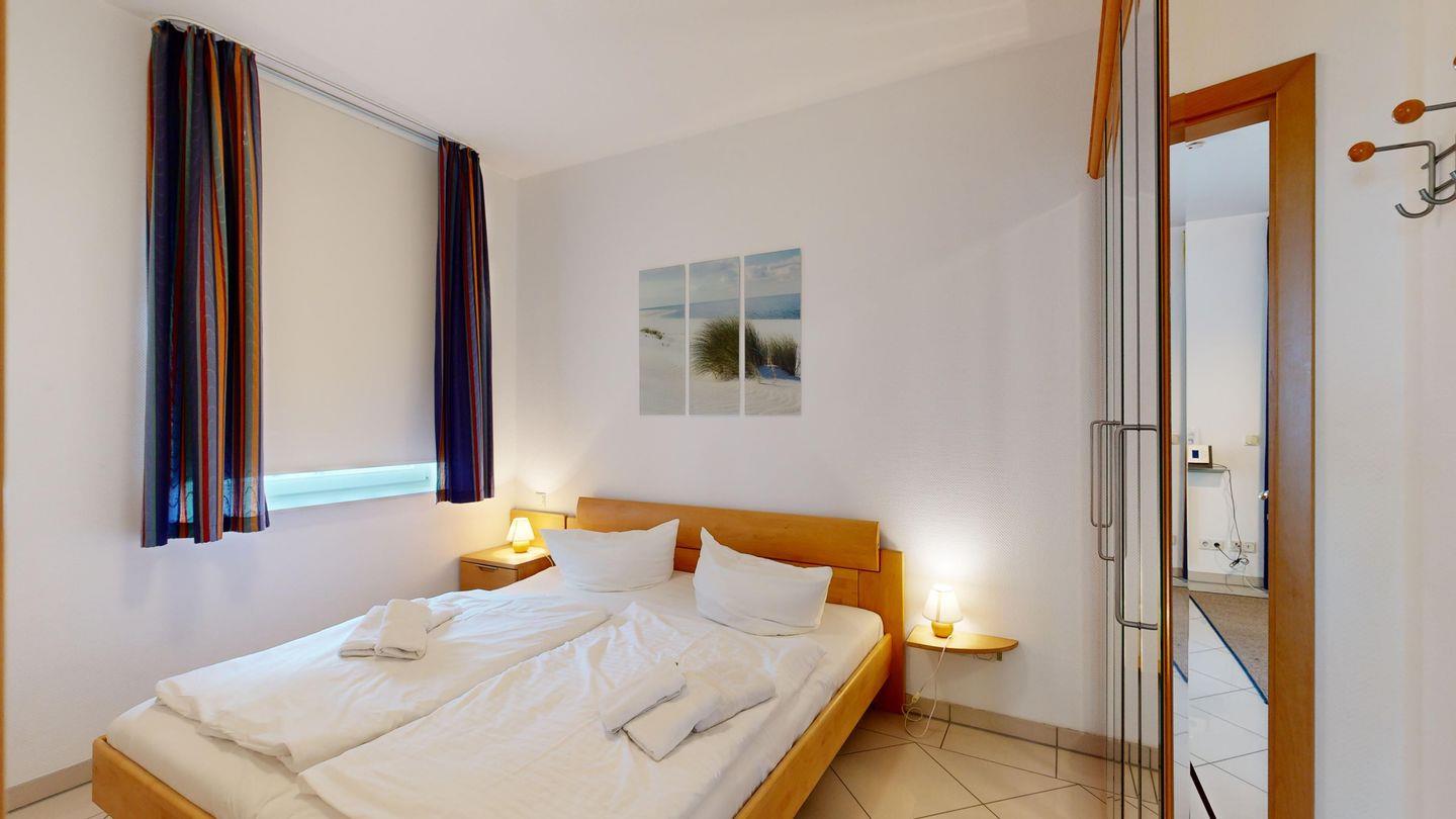 * 1 Schlafzimmer mit einem Doppelbett, 1,80 x 2,00 m getrennte Matratzen