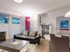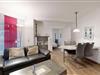 * Wohnzimmer: Ledercouchgarnitur, Essplatz, Kabel-TV (Flachbildschirm) und Internetzugang (WLAN oder Kabel möglich)