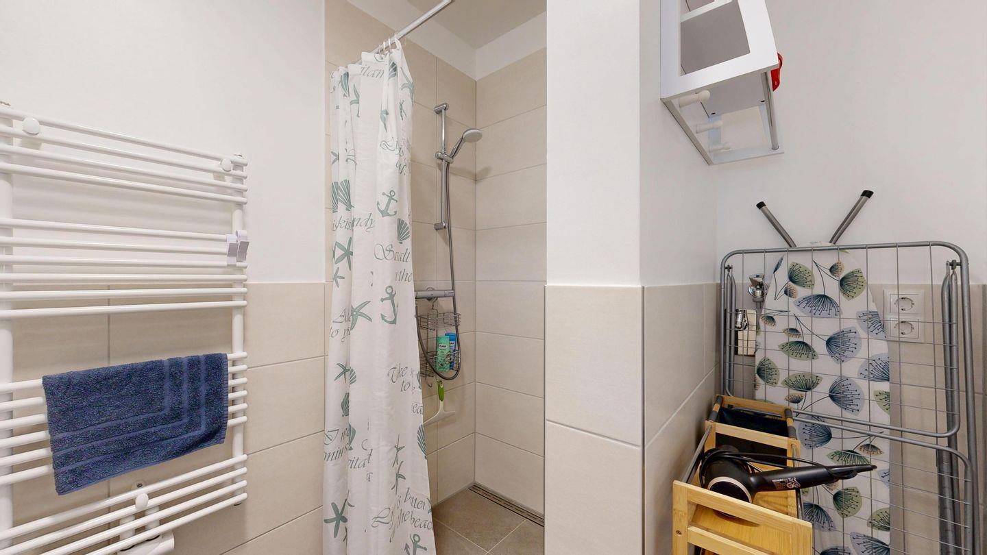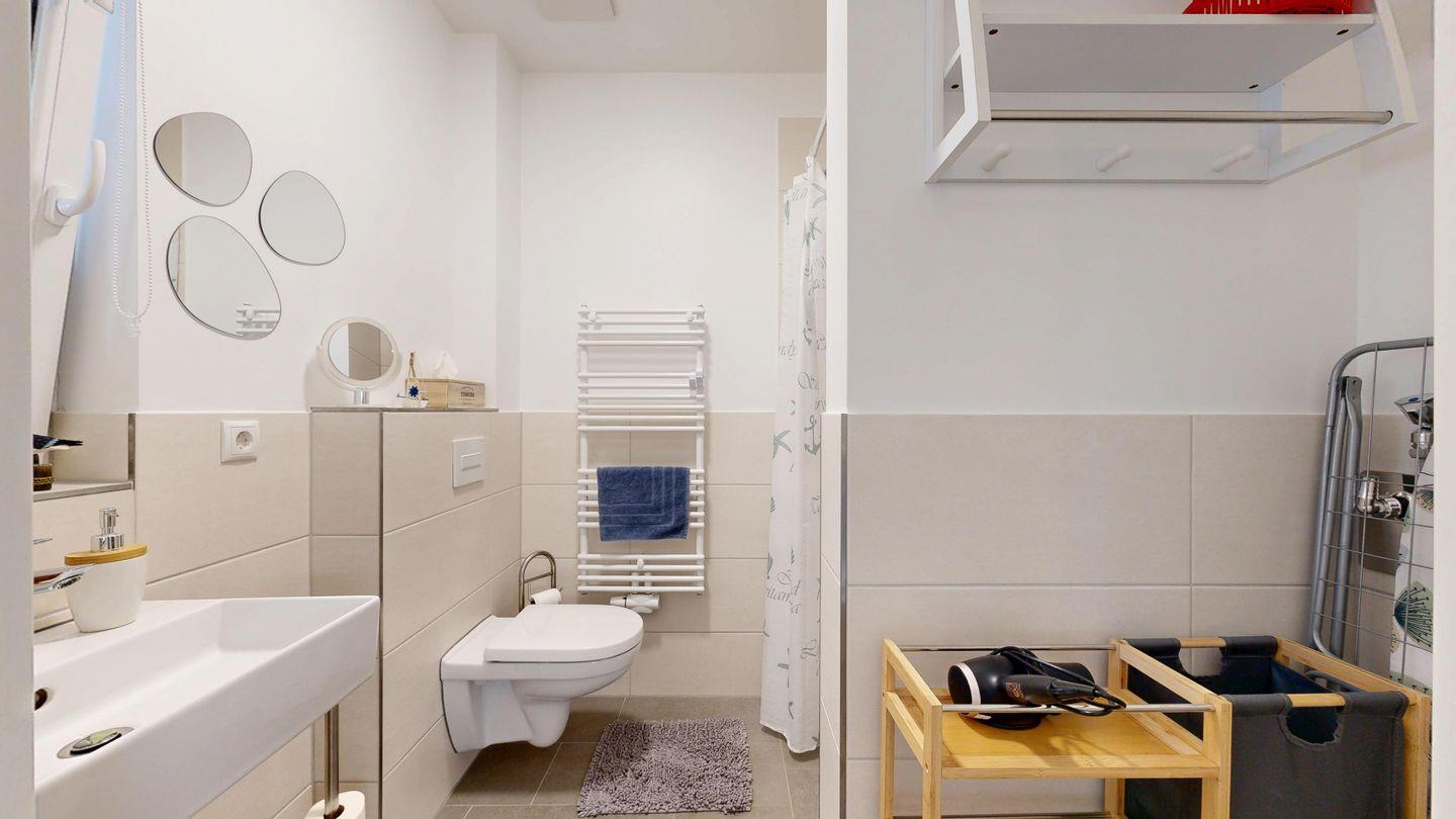 * 1 Badezimmer mit Dusche, WC und Föhn