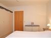 Über den Flur erreichst du das Schlafzimmer mit Doppelbett (2 x 90 x 200 cm) und dem großen Kleiderschrank. Die Böden im Wohn- und Schlafzimmer sind mit Laminat ausgelegt. An den Fenstern dienen Vorhänge zur Verdunkelung. Im Schlafzimmer bieten Fliegengitter einen zusätzlichen Schutz.