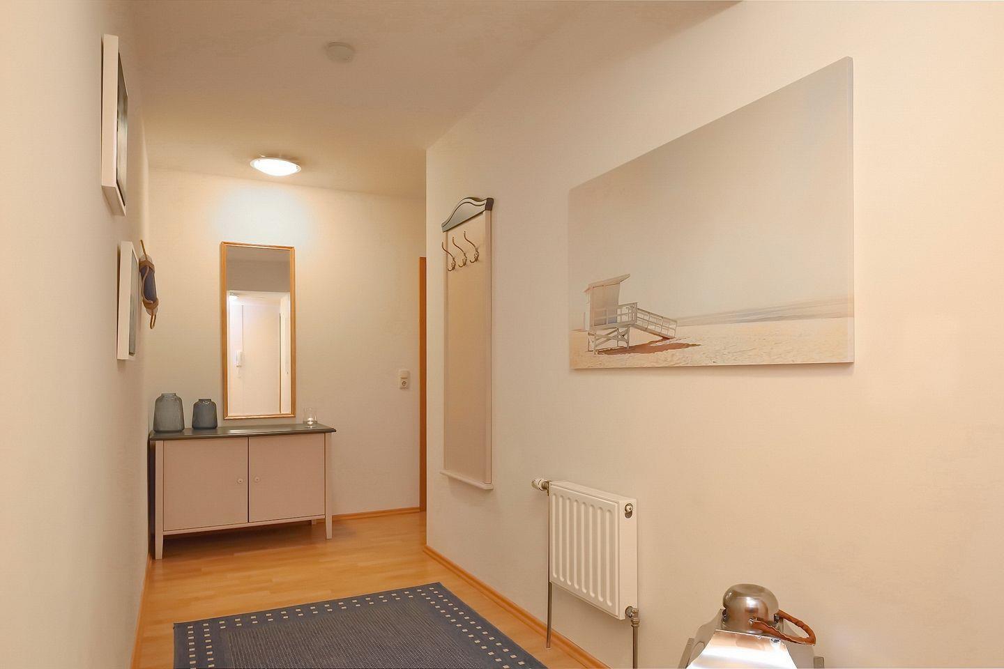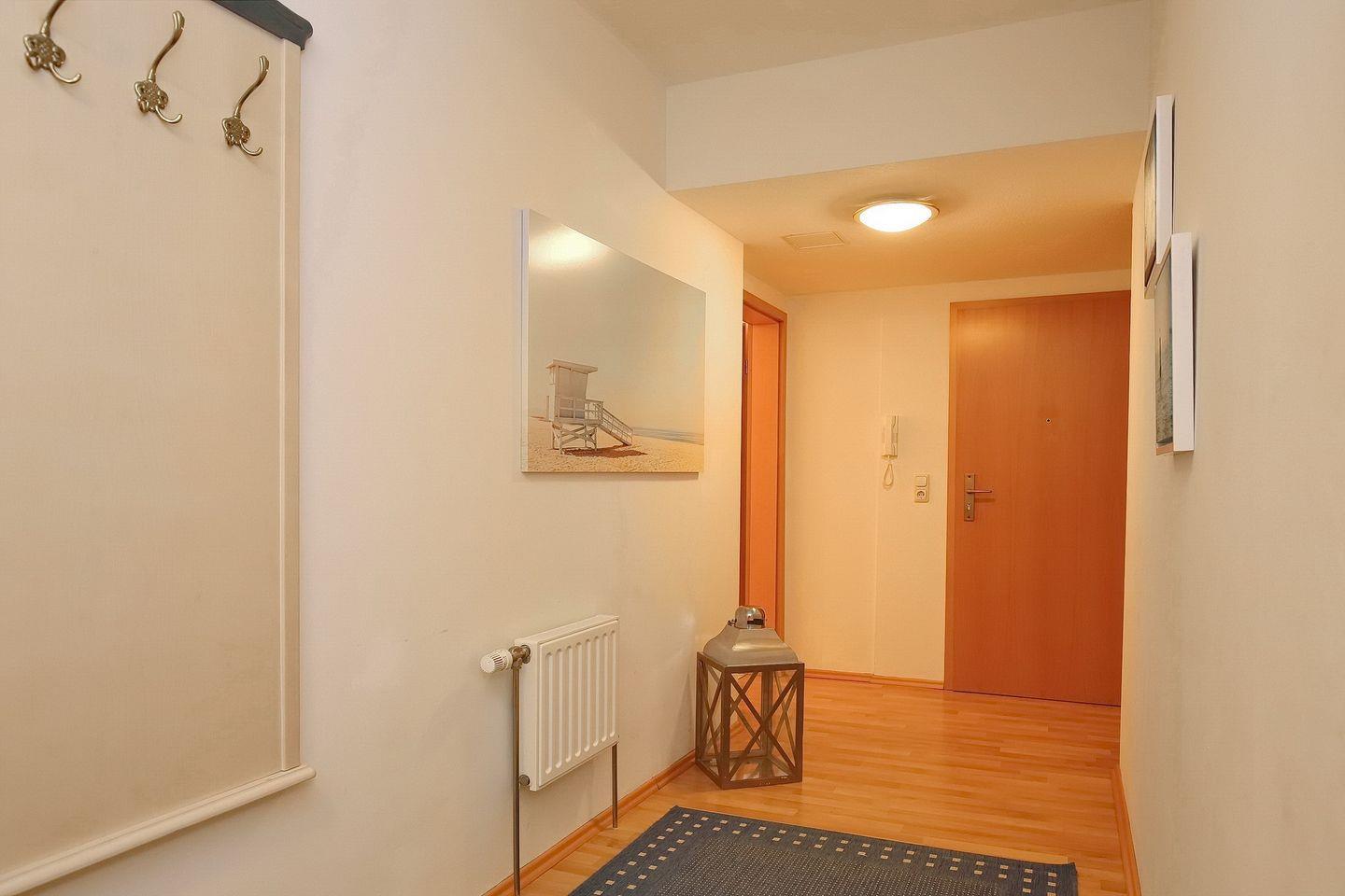 Im 1. Obergeschoss gelegen, verfügst du in der Ferienwohnung auf 58 m² über ein Wohnzimmer, eine separate Küche, ein Schlafzimmer, ein Badezimmer sowie einen Nord-West-Balkon. Die Entfernung zum Strand beträgt ca. 100 m.