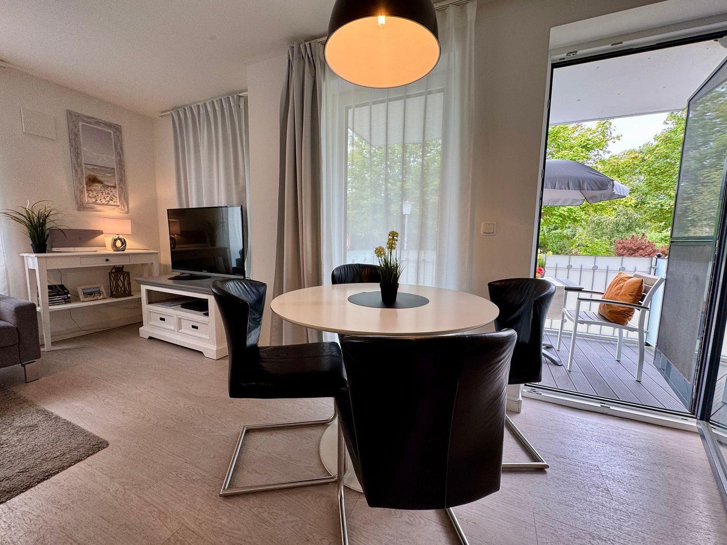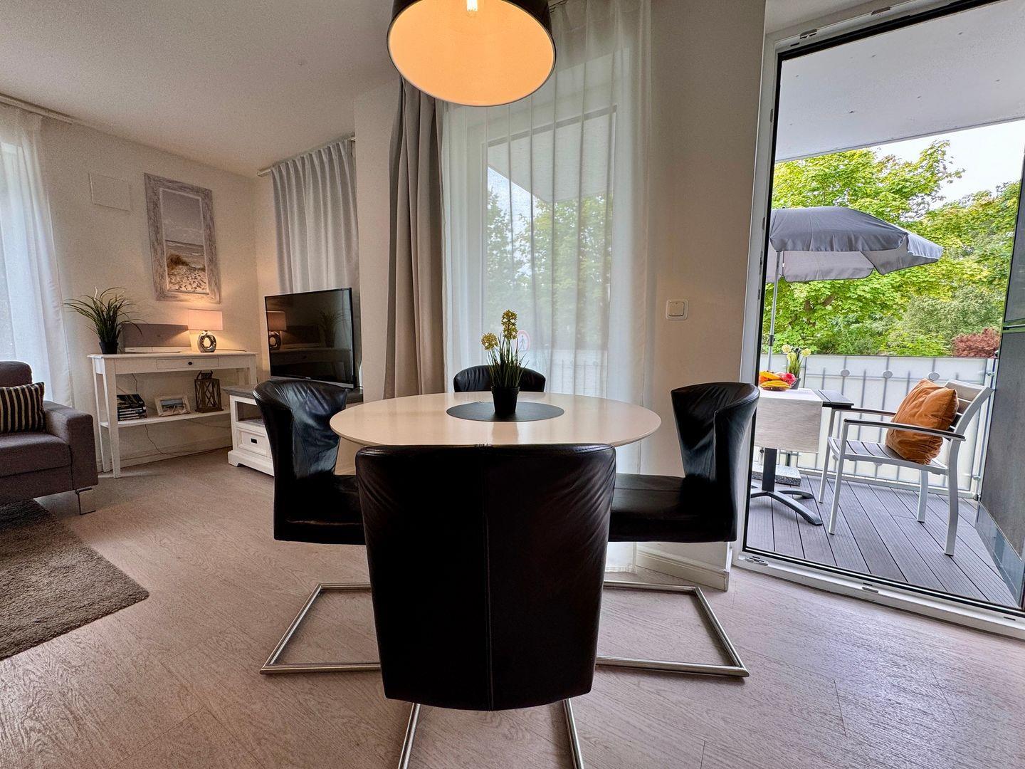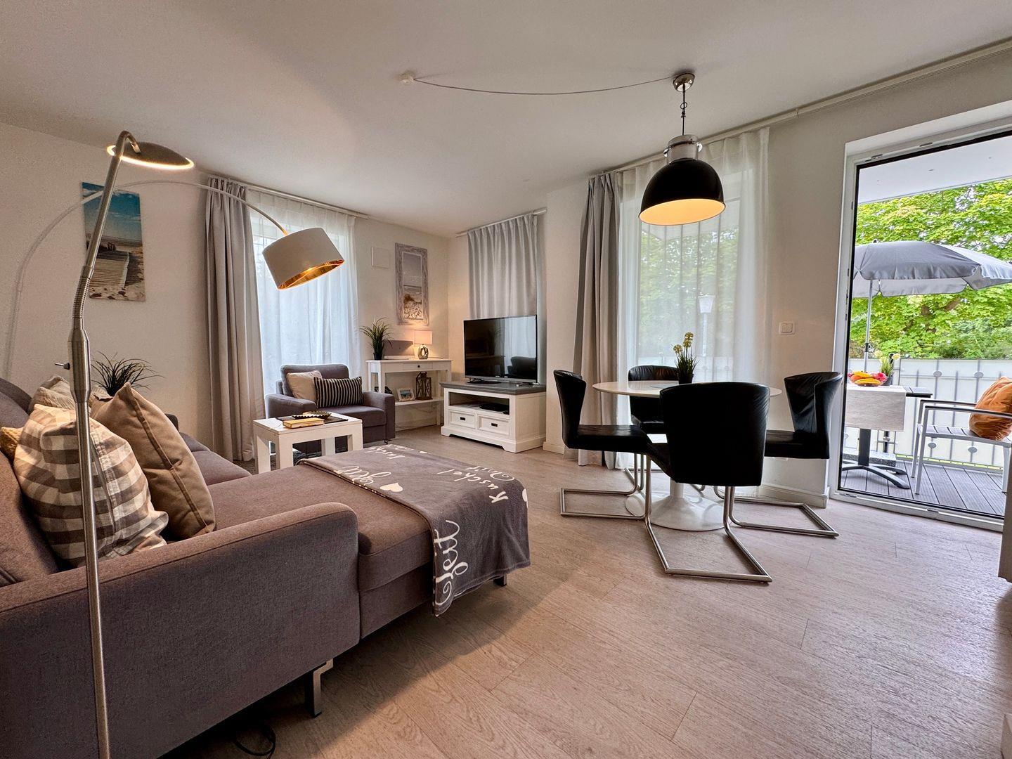 Gemütliches Appartement mit Südbalkon nahe dem Strand in Dierhagen, ideal für 3 Personen, mit moderner Ausstattung und Tiefgaragenstellplatz.