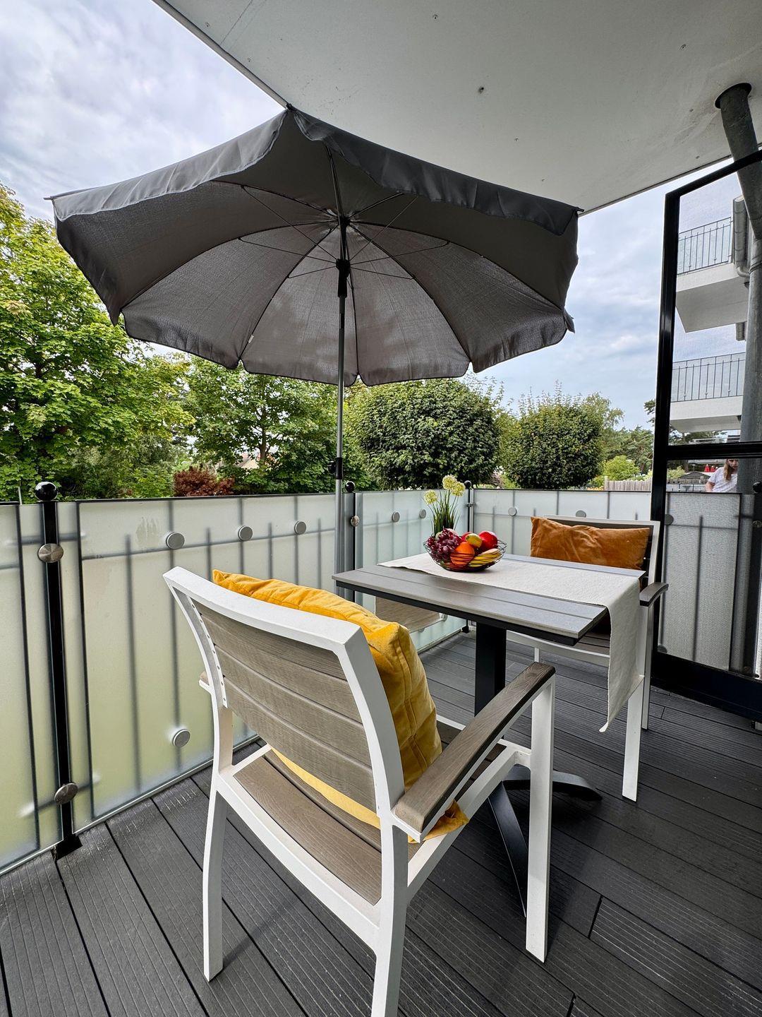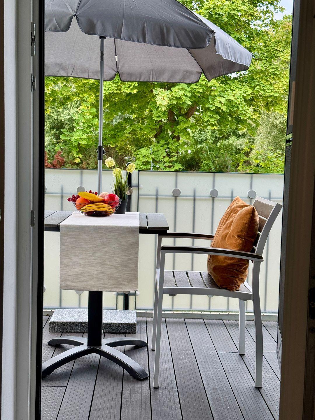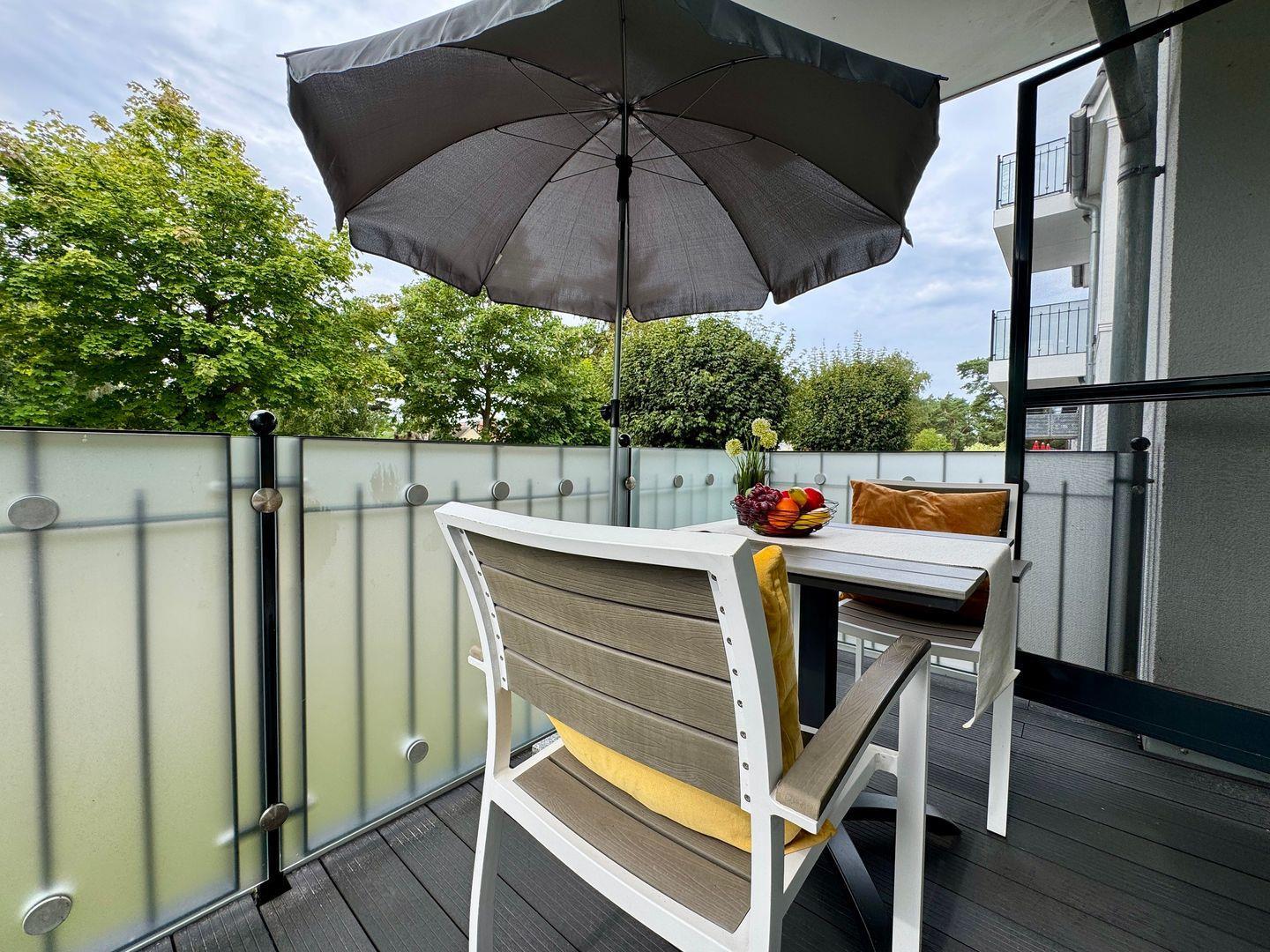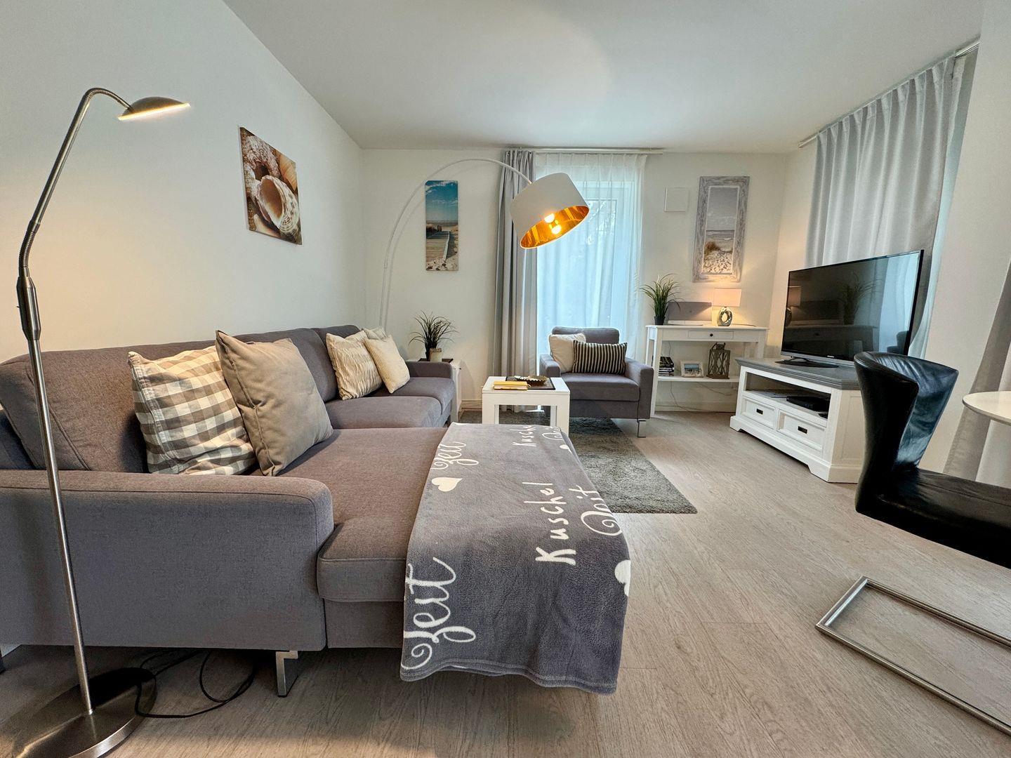 Gemütliches Appartement mit Südbalkon nahe dem Strand in Dierhagen, ideal für 3 Personen, mit moderner Ausstattung und Tiefgaragenstellplatz.