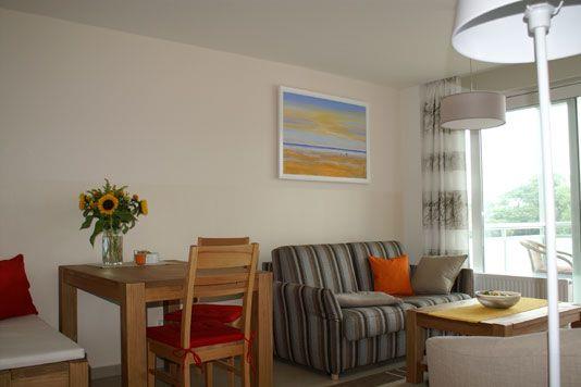 Dieses gemütliche Appartement mit 47 qm befindet sich im 1. Obergeschoss des Hauses und bietet Platz für maximal 3 Personen. Es ist sowohl mit dem Fahrstuhl als auch über die Treppe erreichbar. Auf dem Nord-West-Balkon können Sie die lauen Sommerabende genießen oder ein gemütliches Frühstück im Freien verbringen. Das Wohnzimmer ist mit einer Schlafcouch (130 cm breit) ausgestattet, die zusätzlich Platz für eine weitere Person bietet. Die Küchenzeile ermöglicht Ihnen, sich selbst zu verpflegen und Mahlzeiten zuzubereiten. Ein separates Schlafzimmer mit einem bequemen Doppelbett sorgt für erholsamen Schlaf. Das Badezimmer ist mit einer Dusche und einem WC ausgestattet. Der Pkw-Stellplatz befindet sich direkt am Haus, sodass Sie bequem parken können. Haustiere sind nicht gestattet, und das Rauchen ist in diesem Appartement ebenfalls nicht erlaubt. Für Ihre Kommunikation steht Ihnen kostenfreies WLAN zur Verfügung, sodass Sie jederzeit mit Ihren Lieben in Kontakt bleiben können.