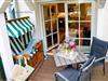 Der einladende Wohnbereich empfängt dich mit gemütlichen Sitzmöbeln. Zur Entspannung gibt es einen Flachbild-Fernseher. Durch die doppelflügelige Tür gelangst du von hier aus auf die überdachte Terrasse der Ferienwohnung. Des Weiteren steht dir kostenfreies WLAN zur Verfügung.