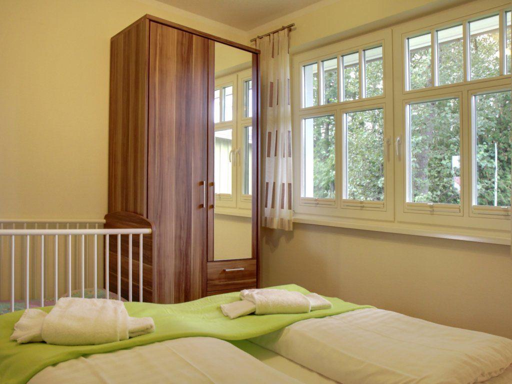 1 Schlafzimmer mit Doppelbett (1,80x2,00m), verstellbare Lattenroste, Kindergitterbett