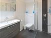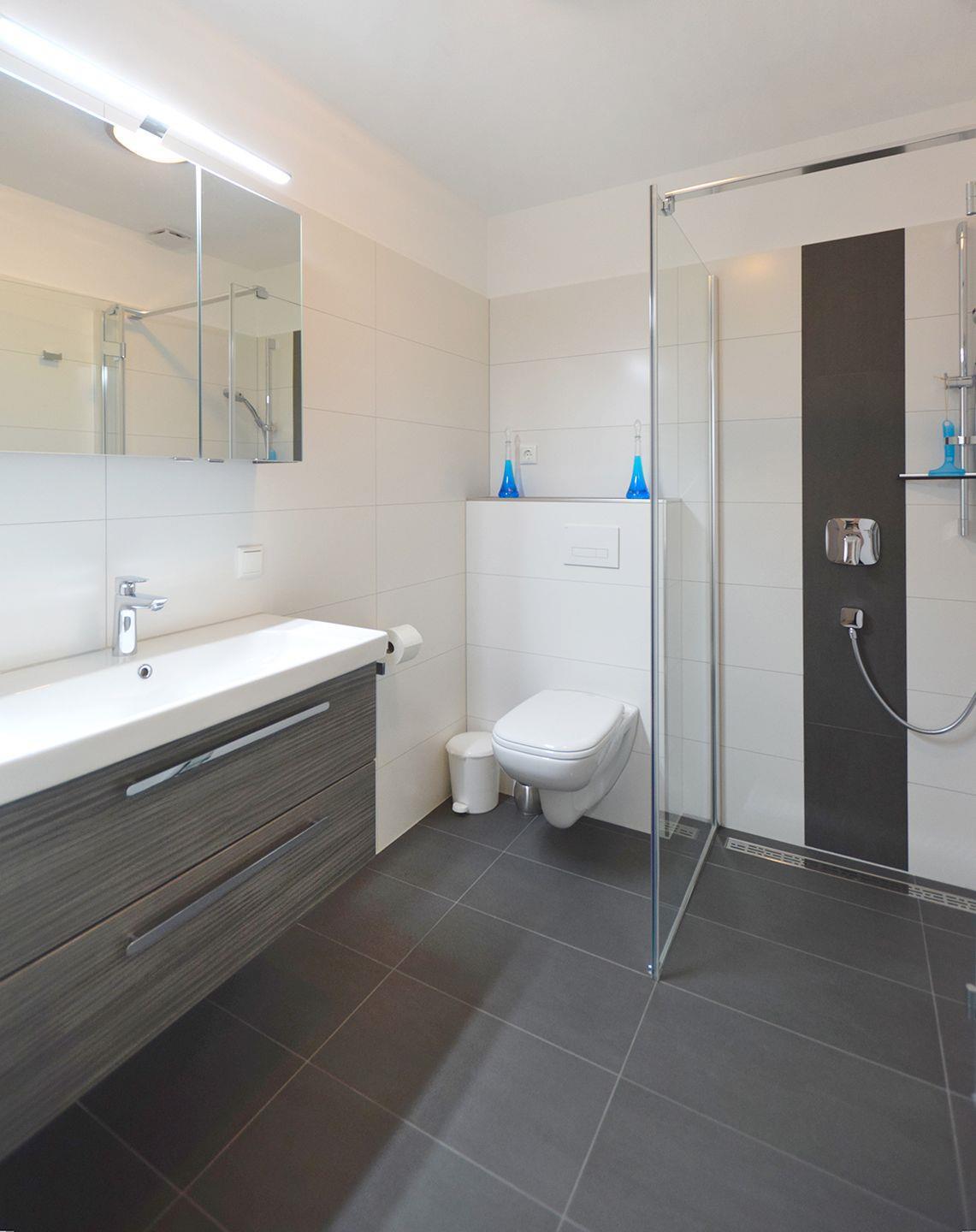 Das moderne Bad ist mit einer bodengleichen Dusche und einem WC ausgestattet.