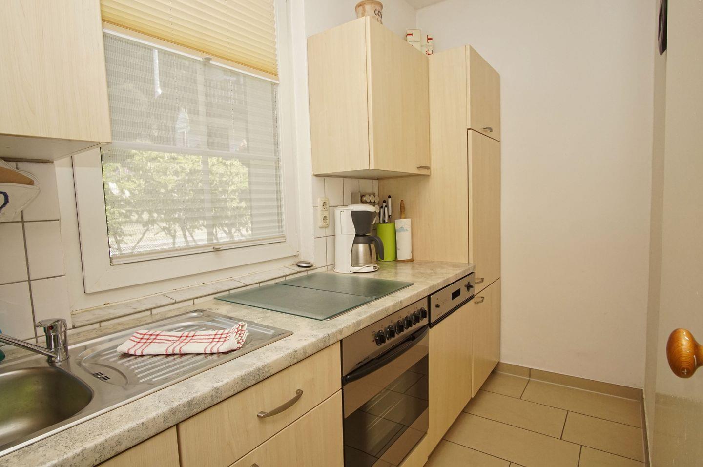 KÜCHE // Küche, Ceranfeld, Spülmaschine, Kühlschrank mit Gefrierfach, Backofen, Toaster, Wasserkocher, Kaffeemaschine, reichlich Besteck, Geschirr und Küchenutensilien ++