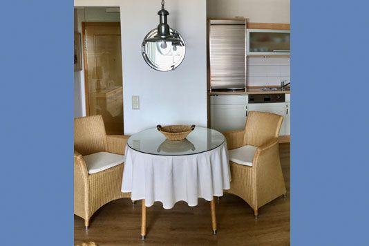 Ein gemütliches Appartement im Obergeschoss für maximal 2 Personen mit Balkon Richtung Westen und Blick auf die Ostsee. Das Appartement verfügt über ein Wohnzimmer mit integrierter Küchenzeile und ein Schlafzimmer mit komfortablen Doppelbett. Das Badezimmer ist mit Dusche und WC ausgestattet. Eine Waschmaschine steht gegen Gebühr zur Verfügung. Haustiere und Rauchen sind nicht gestattet, jedoch gibt es WLAN für einen bequemen Internetzugang während des Aufenthalts. Diesem Appartement ist der Tiefgaragenstellplatz Nr. 17 zugeordnet.