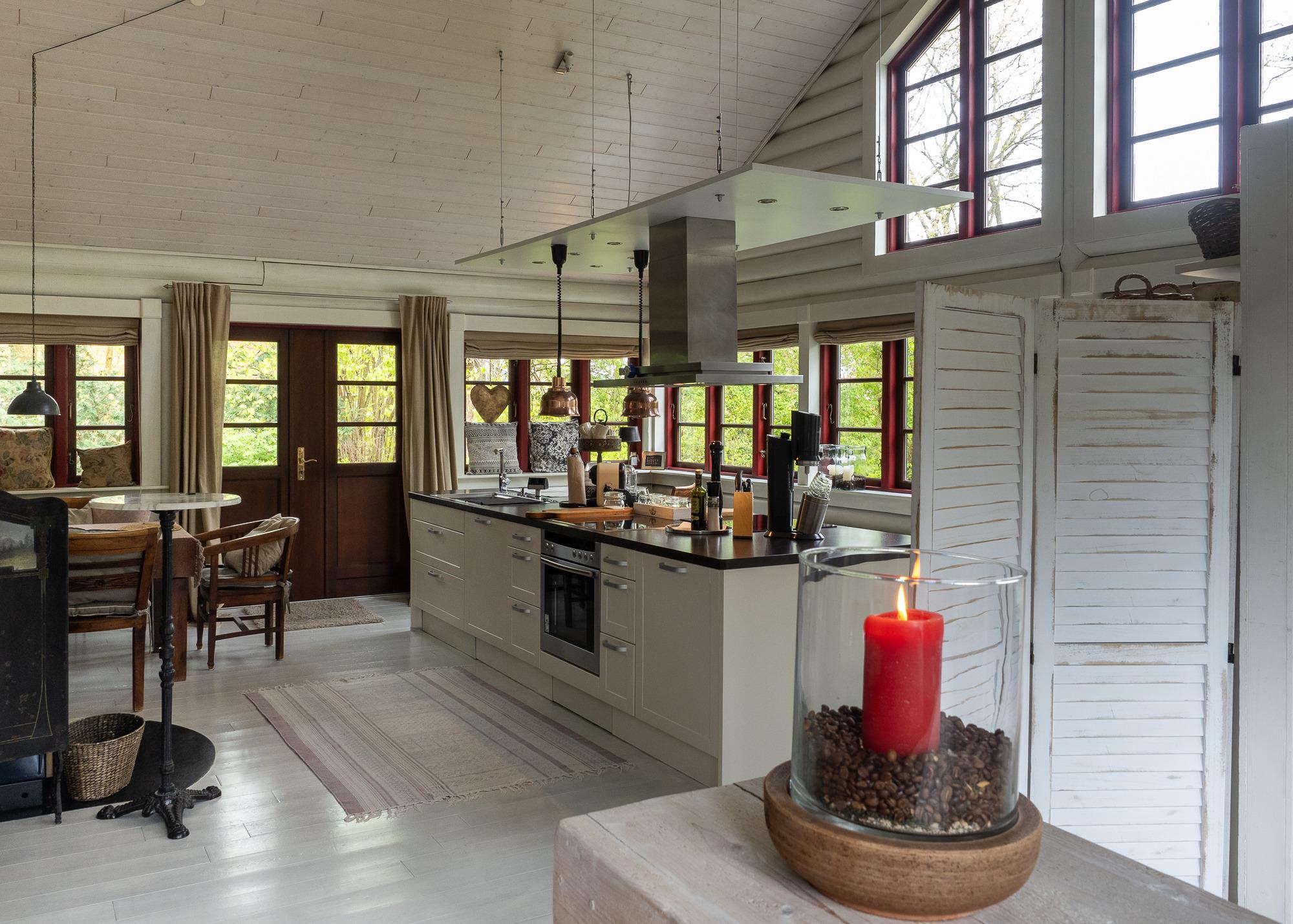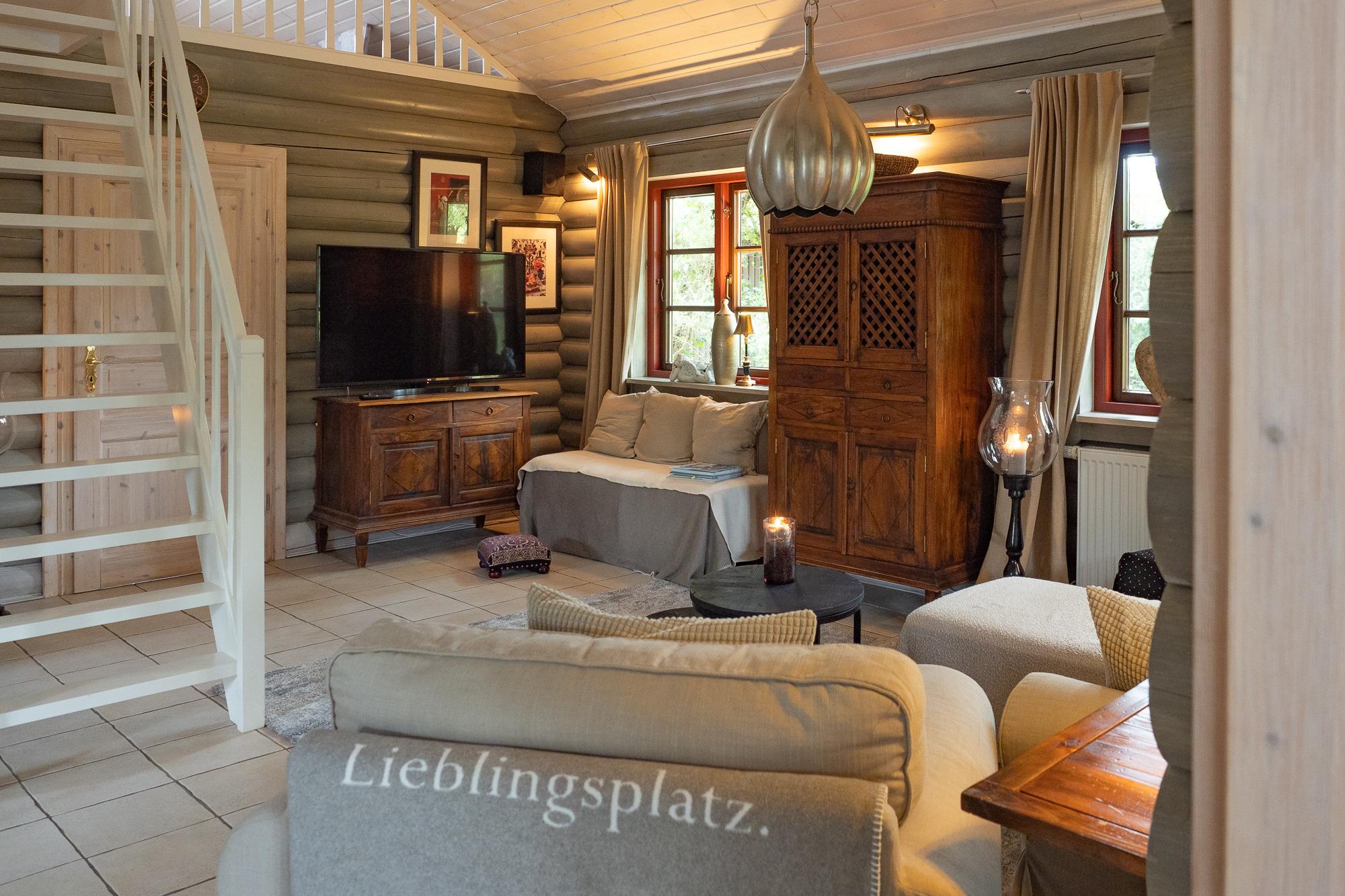 Das Ferienhaus beeindruckt mit einem stilvollen Landhausambiente, das mit viel Liebe zum Detail gestaltet wurde. Hier erwartet Sie eine warme und gemütliche Atmosphäre, in der Sie sich rundum wohlfühlen werden. Zu den besonderen Highlights zählt eine großzügige 40 Quadratmeter große Landhaus Wohnküche mit einem Specksteinofen und direktem Zugang zum Garten. Im kuscheligen Wohnzimmer finden Sie einen DVD-Player, einen Flachbildfernseher, eine Stereoanlage, WLAN und einen offenen Kamin. Auf der Empore befindet sich ein offener Schlafraum mit einem 181 cm x 210 cm großen Landhausbett und zwei Fenstern mit französischem Balkon. Ein weiteres Schlafzimmer ist mit einem 181 cm x 210 cm großen Hotel-Boxspringbett Deluxe ausgestattet. Das großzügige barrierefreie Duschbad verfügt über zwei Fenster und zwei Waschbecken. Dank des natürlichen Baustoffs Holz, bietet das Haus ein gesundes Wohnklima.