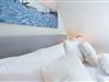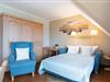Schlafzimmer 1: 1 Boxspring-Doppelbett (180x200 cm), elektrische Verdunklungsrollos, Dachgeschoss.