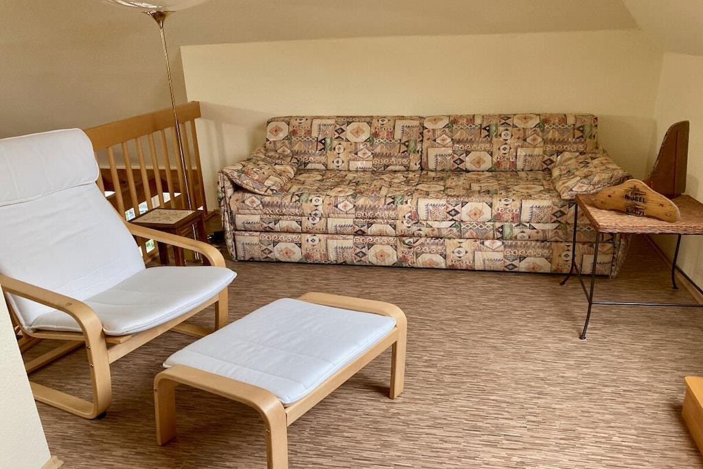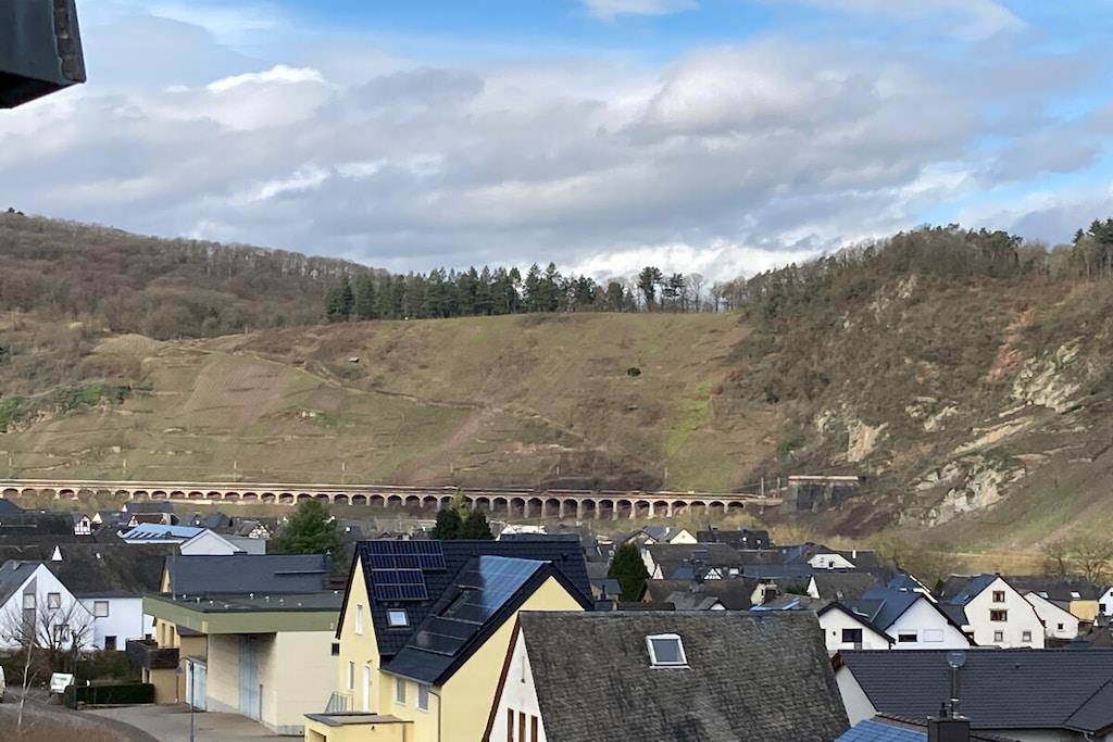 Die Ferienwohnung ist 70qm groß und bietet Platz für bis zu 4 Personen. Sie ist gehoben ausgestattet und bietet viel Platz. Sie ist auf zwei Ebenen offen organisiert. Unten befindet sich der geräumige Wohnraum mit Küchenbereich, das zauberhafte Bad mit Wanne und ein Schlafraum. Auf der Empore befindet sich ein Wohn-, Schlaf- und Arbeitsbereich. Die Lage und der Ausblick sind fantastisch. Man hat gegenüber die Marienburg und blickt unten auf Weinberge, den Ort Pünderich und Freizeitbereiche.