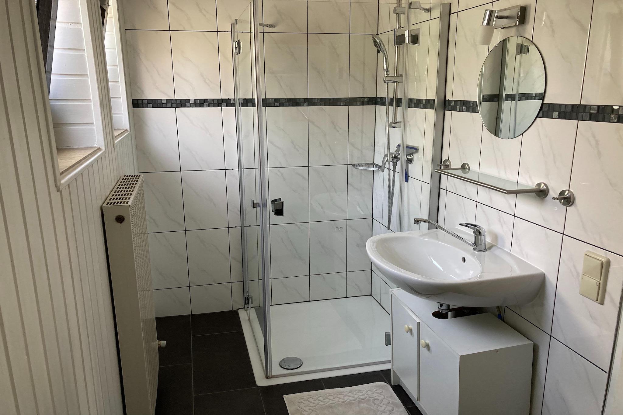 Parterre: (Wohnzimmer(Schlafcouch 1 Pers., TV, Esstisch, Sitzecke), Kochnische(Wasserkocher, Kochherd, Kaffeemaschine, Backofen, Mikrowelle, Kühl-/Gefrierkombination), Schlafzimmer(Doppelbett(180 x 200 cm)), Badezimmer(Dusche, Waschbecken, Toilette)) Grill, Terrasse, Garten, Parkplatz