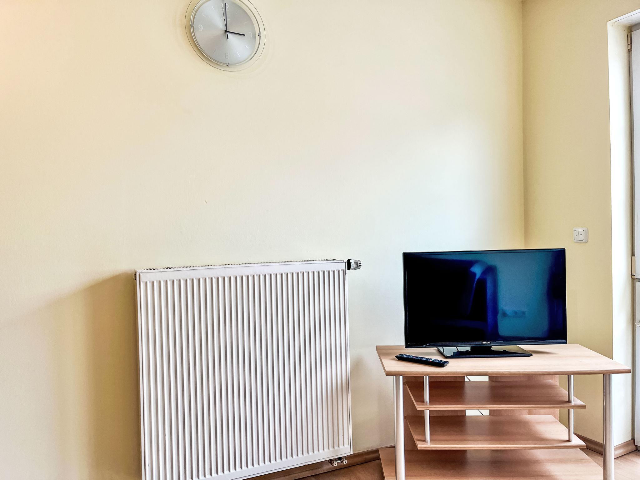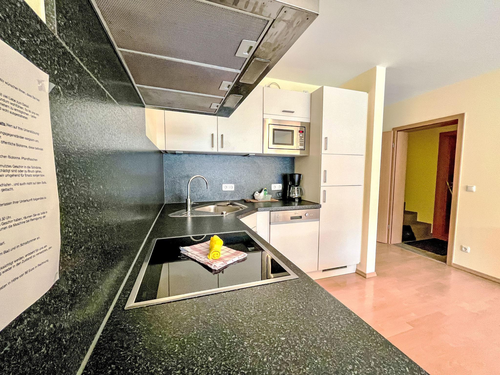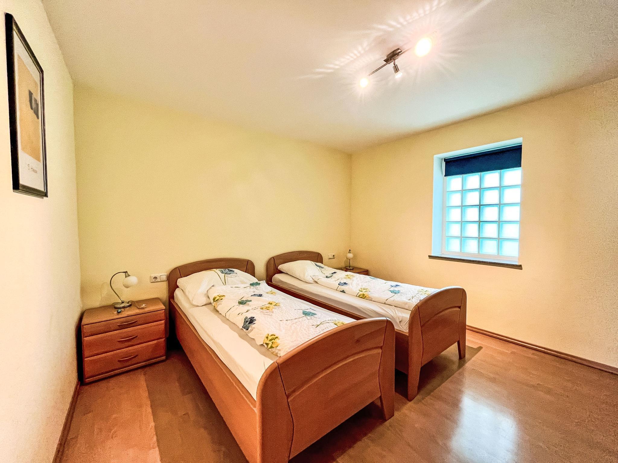 2-Zimmer-Wohnung 40 m2 im 1. Stock. Objekt geeignet für 2 Erwachsene. Modern und geschmackvoll eingerichtet: Wohn-/Esszimmer mit Sat-TV. 1 Zimmer mit 2 Betten. Kochnische (Backofen, Geschirrspüler, Mikrowelle, Tiefkühler, elektrische Kaffeemaschine). Dusche/WC. Bitte beachten: Nichtraucher-Unterkunft. Rauchmelder. Das Schlafzimmer verfügt anstatt eines Fensters über Glasbausteine. Buchungen sind nur zu touristischen Zwecken erlaubt.
