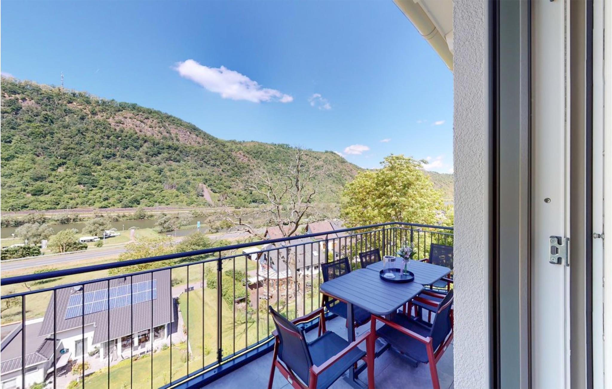 Die Ferienwohnung mit Empore besitzt einen ebenerdigen (das Haus Casa Lion ist in Hanglage gebaut) Zugang und ist somit auch barrierefrei. Sie betreten die Wohnung über einen kleinen Flur und erreichen den lichtdurchfluteten Wohn/Ess-Bereich. Ihr Blick wird sicherlich von den großen Panorama Fenstern im Wohn/Essbereich angezogen, die einen fantastischen Ausblick auf die Mosel bieten. Die Küche ist geschmackvoll und mit allen notwendigen Gerätschaften ausgestattet und die davor eingebaute Essecke eignet sich nicht nur für die Mahlzeiten, sondern bietet auch Platz zum spielen und arbeiten. Neben der Küche befindet sich die Raumspartreppe hinauf auf die Empore, wo sich ein Schlafraum für Kinder bis 12 Jahren, sowie Raum zum Spielen oder als Rückzugsort befinden. Von der Wohnlandschaft aus kann man sowohl den fantastischen Ausblick, oder aber gemütliche Kaminabende vor dem elektrischen Kamin mit Heizfunktion genießen. Ein Flur führt dann weiter in den Schlafbereich mit zwei Schlafzimmern, jeweils mit Doppelbett und Smart-TV ausgestattet. Ein Schlafzimmer verfügt über ein angeschlossenes Bad, das andere ist über den Flur erreichbar. Im Wohnzimmer befindet sich ein dritter Smart-TV und kostenfreies WLAN rundet die digitale Ausstattung ab. In der Wand, dem Boden oder in der Decke sind Heizfolien installiert. Diese können für jeden Raum einzeln gesteuert werden und sorgen für eine gesunde, äußerst angenehme Wärme in der Ferienwohnung.
