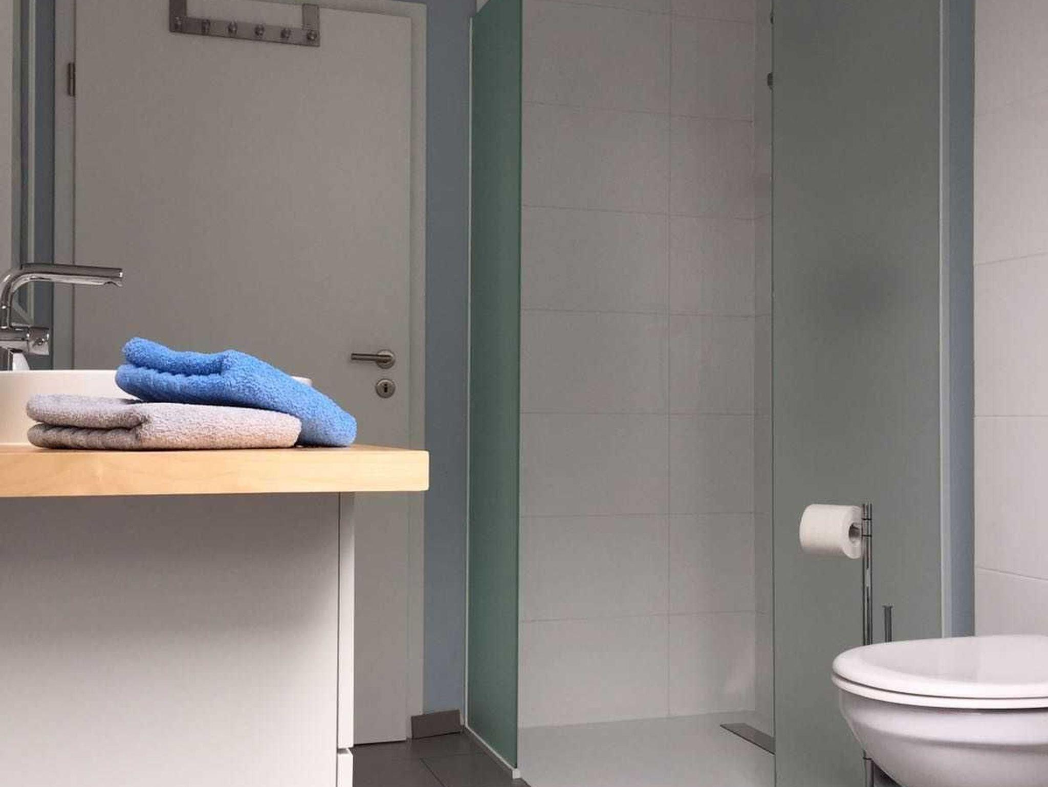 Die Wohnung hat 50qm, liegt im Dachgeschoss und hat einen separaten Eingang. Wir bieten einen kombinierten Wohnbereich mit offener Küche, zwei Schlafzimmer(1 Doppelbett/2 Einzelbetten) sowie ein Bad mit Dusche. Die Ferienwohnung ist komplett ausgestattet und für einen Familienurlaub, oder einen Aufenthalt mit Freunden geeignet. Es gibt einen PKW-Stellplatz, Abstellmöglichkeiten für Fahrräder, Sitzgelegenheiten und einen Grillplatz im Garten.