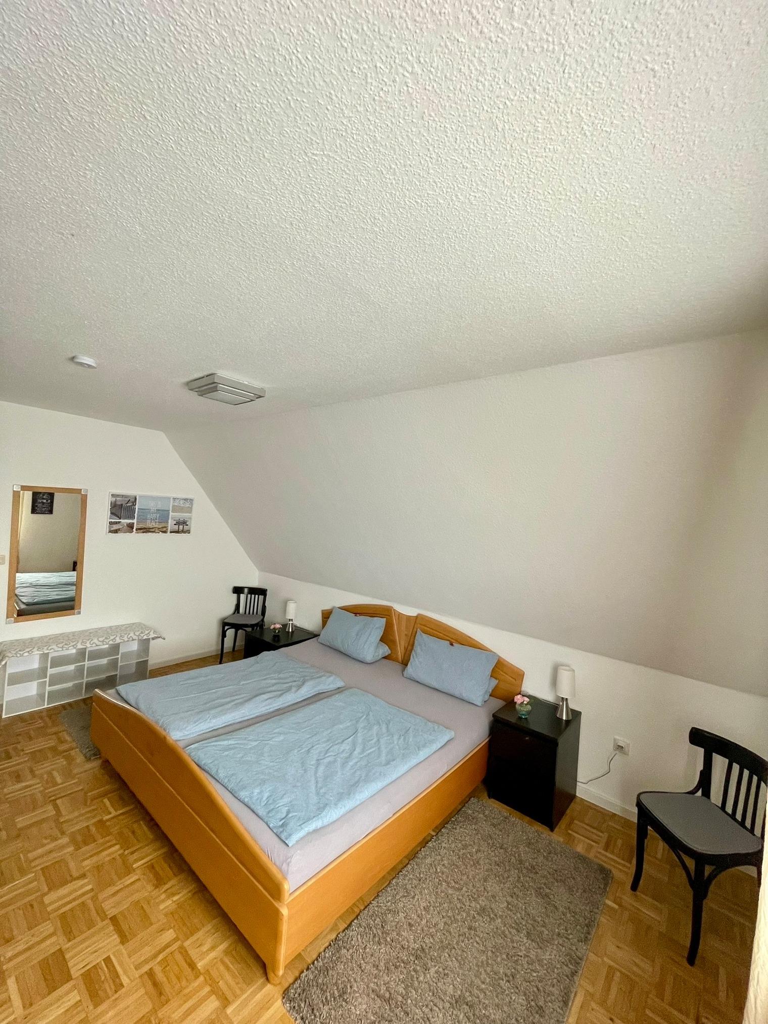 Die Ferienwohnung Paul ist zentral gelegen, aber in sehr ruhiger Verkehrslage. Sie ist eine sehr helle, freundliche und gemütliche Oberwohnung mit 70 qm Wohnfläche. Diese komplett eingerichtete Ferienwohnung bietet großzügig Platz für bis zu 5 Personen (4 Erwachsene und ein Kind). Die Innenstadt ist bequem zu Fuß zu erreichen. Eine wunderschöne, neu angelegte Dachterrasse ist von der Küche aus zugänglich. Komplettküche mit Spülmaschine und Backofen, Mikrowelle, Toaster, Kaffeemaschine und Wasserkocher, Kühlschrank mit Gefrierfach. Zwei Schlafzimmer mit Doppelbetten und Echtholz-Parkettboden. (Hausschuh-Pflicht). Badezimmer mit Badewanne (Dusche integriert). 3 große Flachbildschirme / Sat-TV, Eigener Parkplatz direkt vor der Haustür. Zustellmöglichkeit Kinderbett, Nichtraucher, WLAN. Bettwäsche inklusive, Handtücher auf Wunsch.