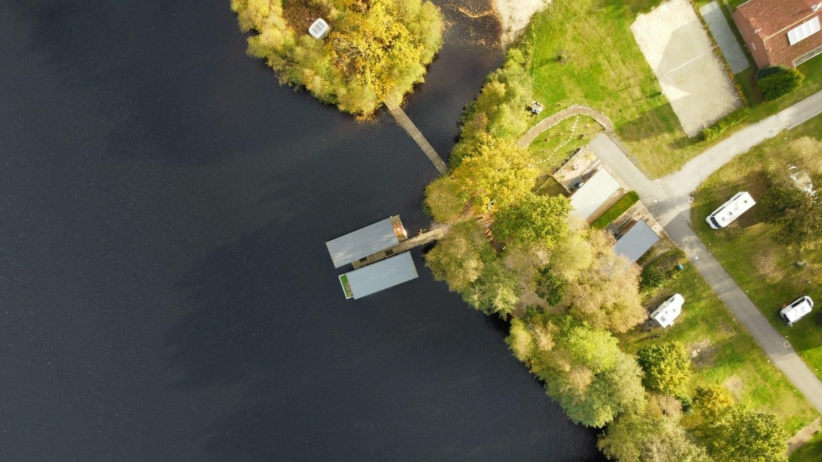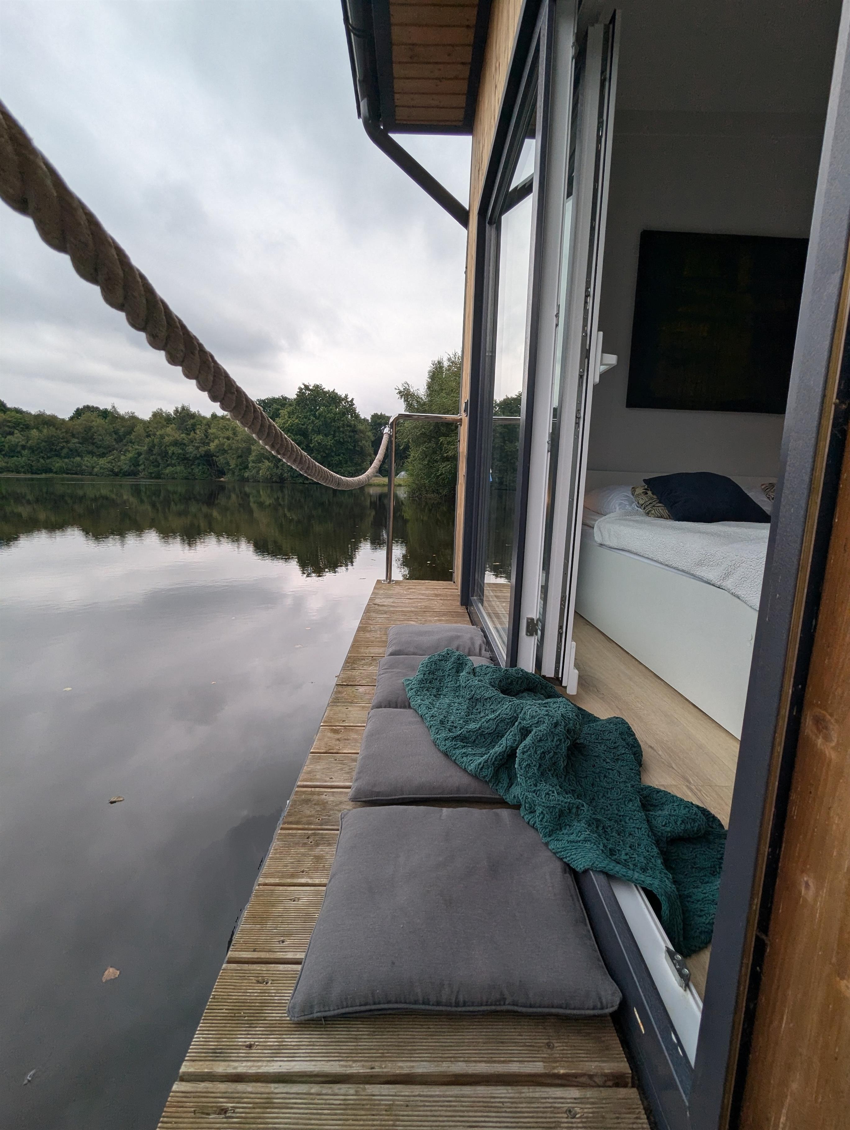 Unser Tinyhouse "Lena" ist 32qm groß und liegt auf dem See direkt am privaten Badestrand.