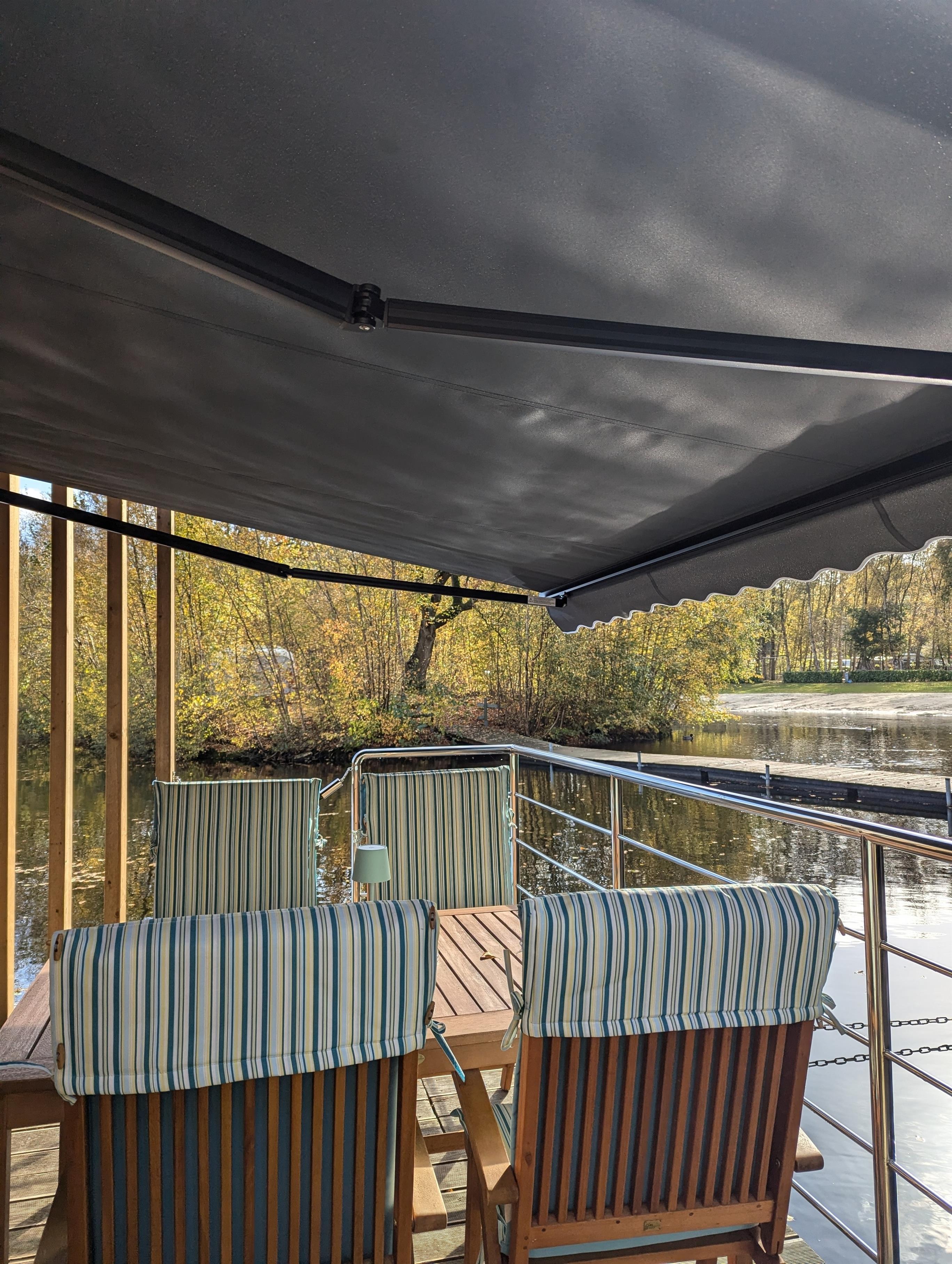 Genießen Sie Ihren Urlaub auf Ihrer Terrasse, die mit Markisen und einer Sitzgruppe ausgestattet ist oder an Ihrem privaten Strand