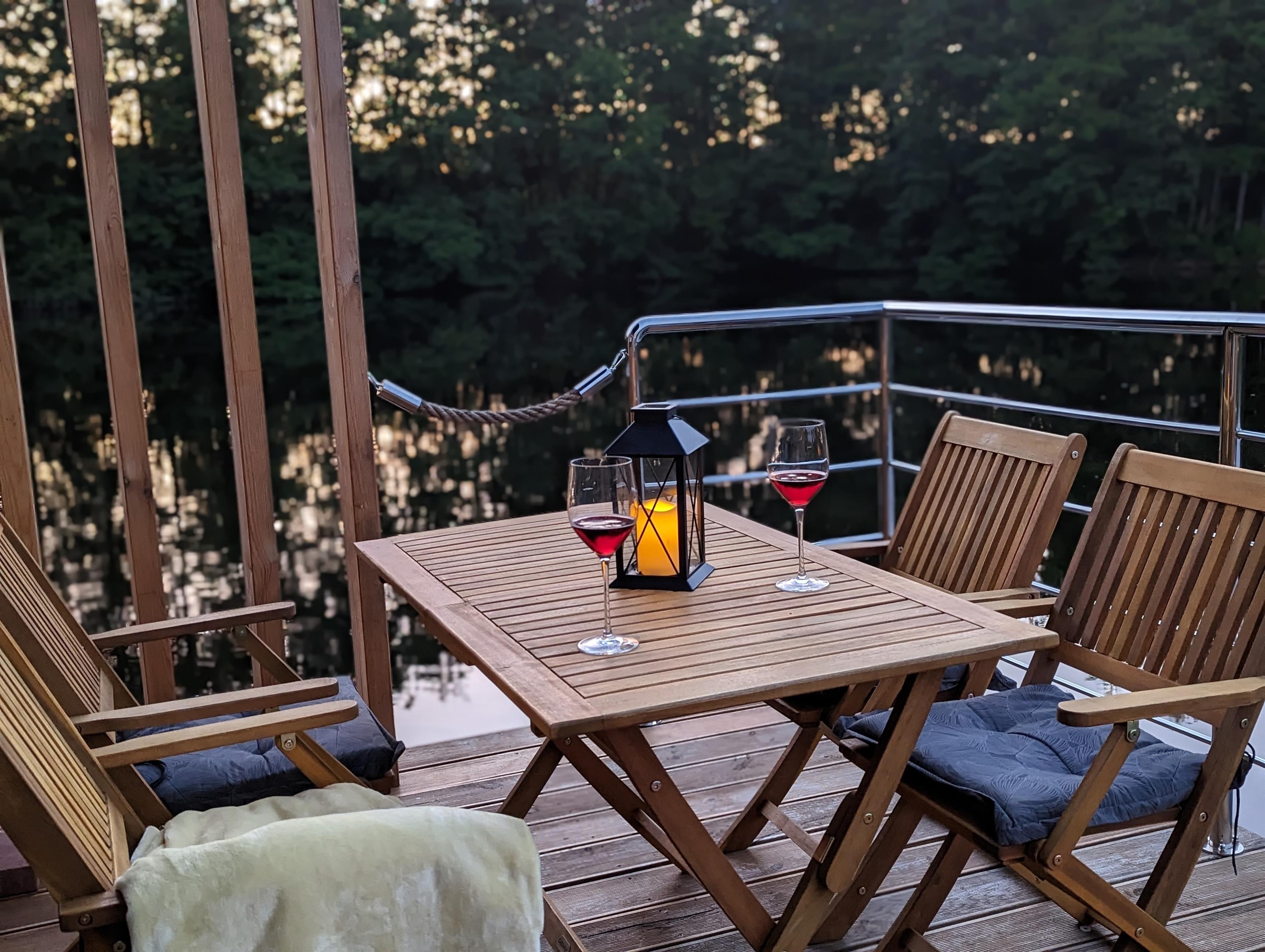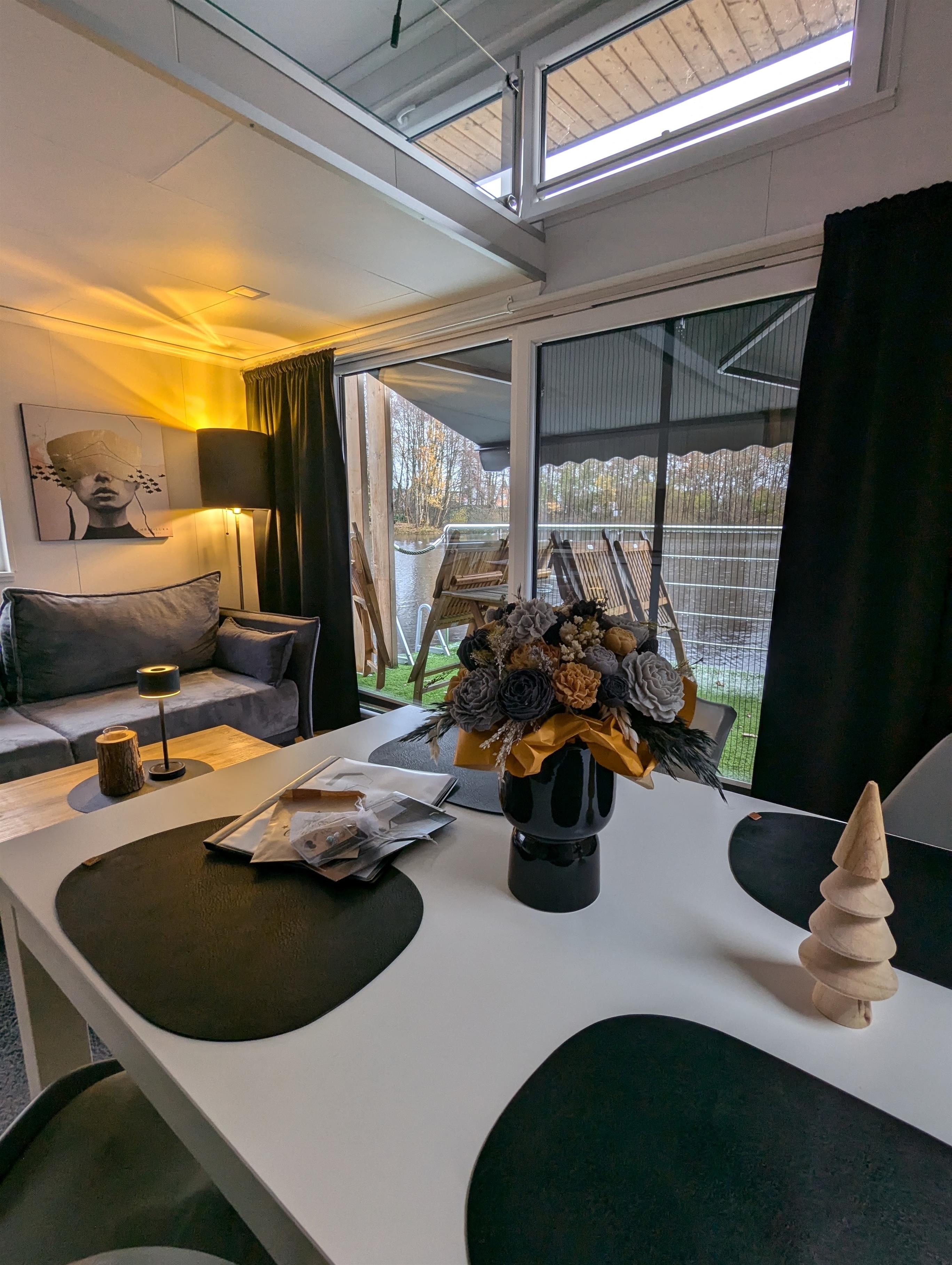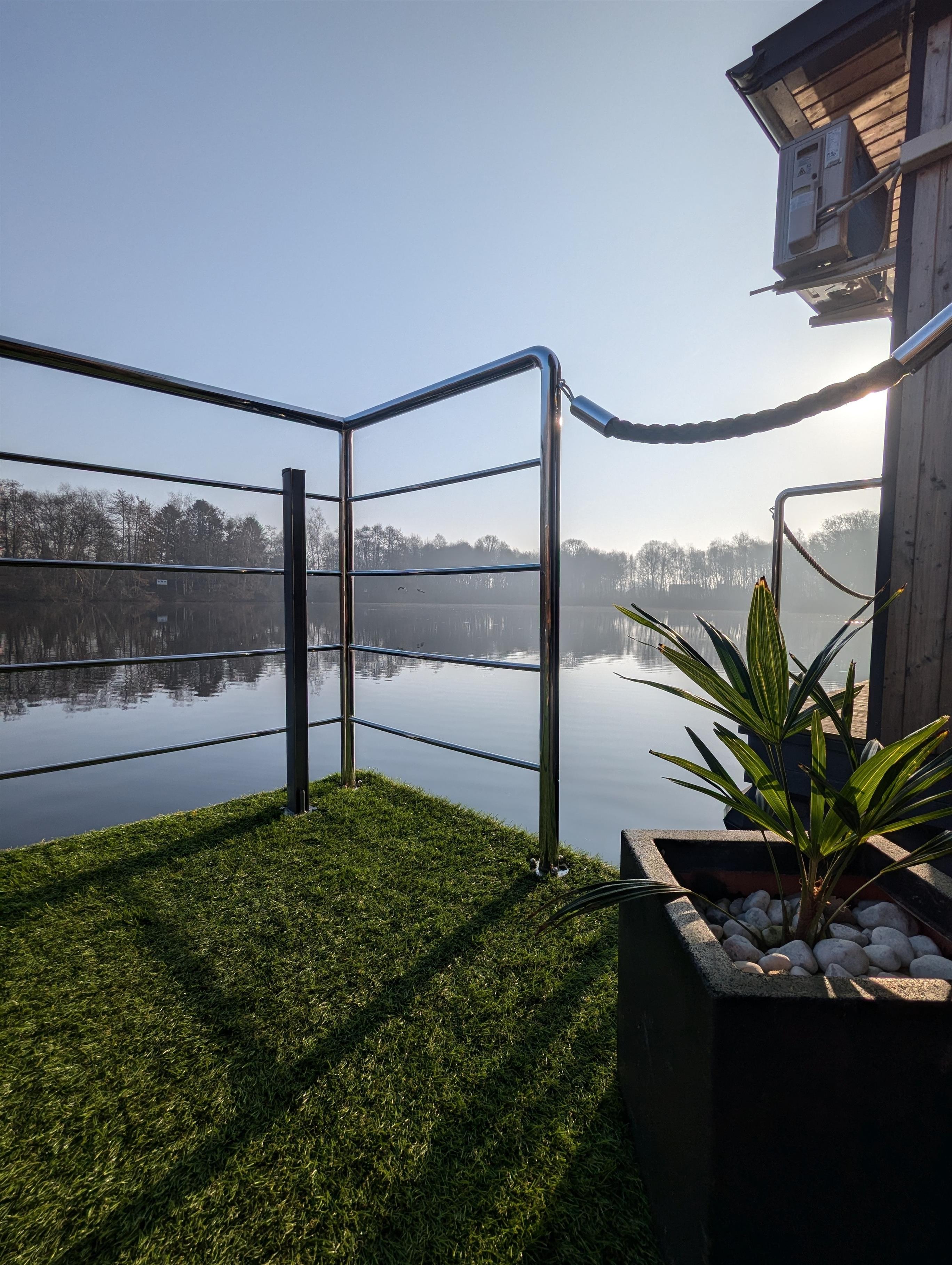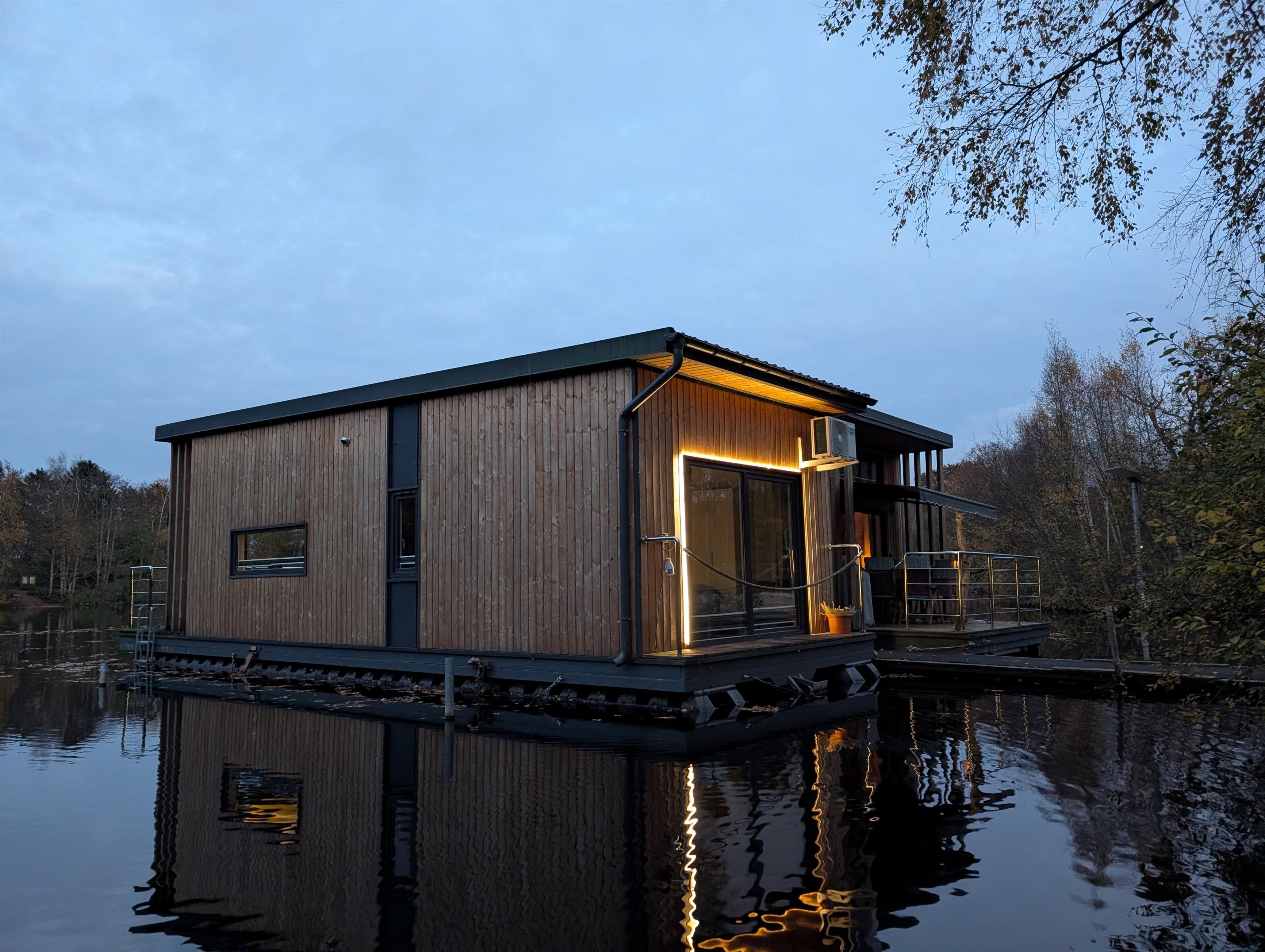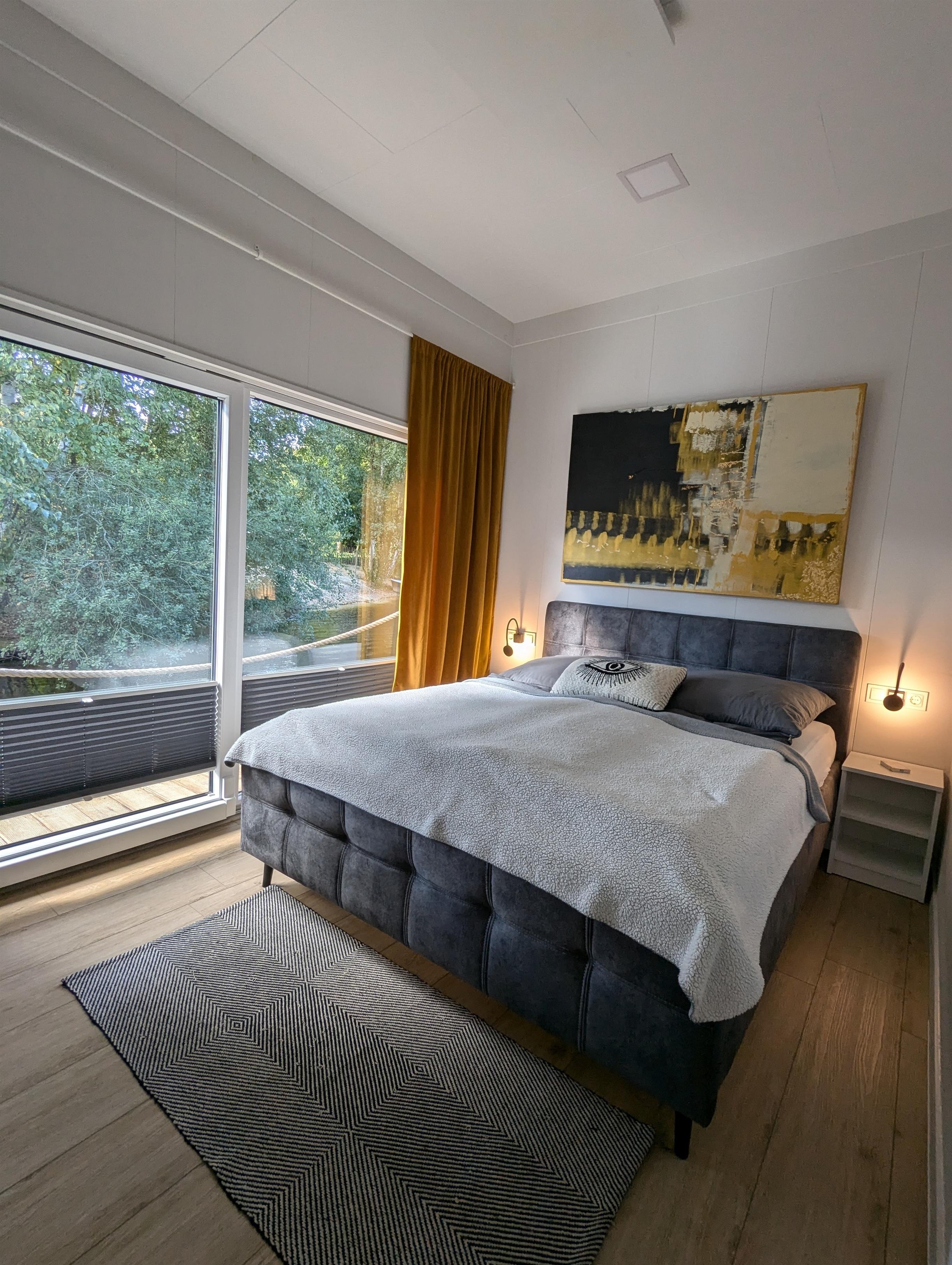 Unser Tinyhouse "Friedrich" ist 32qm groß und liegt auf dem See direkt am privaten Badestrand.