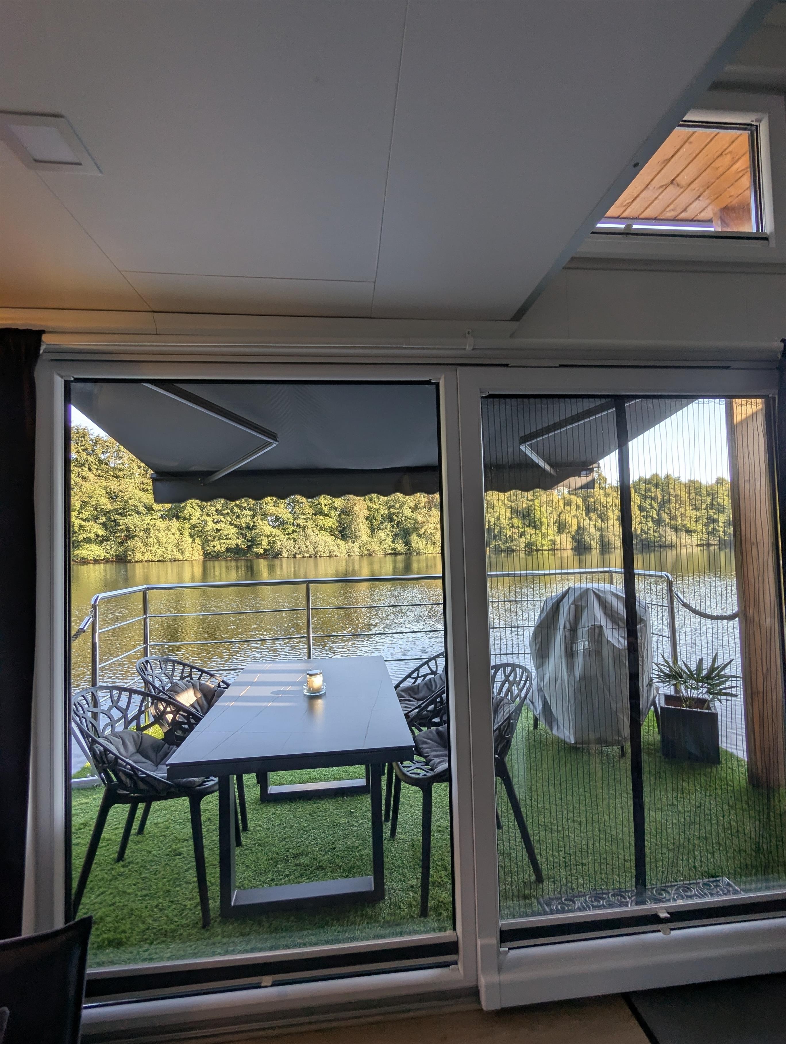 Erleben Sie das charmante Hausboot "Friedrich" mit Seeblick und privatem Badestrand in ruhiger Lage bei Papenburg.