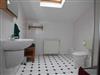Das Bad hat Toilette mit Dusche. Die Fußböden in allen Räumen bestehen aus Terracottafliesen.