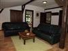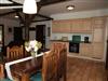 Mit mehr als 100 m² ist diese unsere größte Wohnung in der oberen Etage des Bauernhauses. In dem schönen über 40 m² großen Wohnzimmer sind eine voll ausgestattete Küche und ein großer Essplatz integriert und durch Fachwerk optisch von der gemütlichen Sitzgruppe getrennt. Die Leder-und Vollholzmöbel passen wunderbar zum Stil des Hauses.