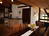 Die kleinere gemütliche 62 m² große Ferienwohnung ist perfekt für 4 Personen und befindet sich in der ersten Etage des alten Bauernhauses. Die Wohnung ist im ländlichen Stil, mit schönem, massivem Holz- und Ledermobiliar eingerichtet. Sie verfügt über zwei Schlafzimmer, wobei ein Schlafzimmer mit einem Doppelbett, ein Schlafzimmer mit zwei Einzelbetten ausgestattet ist. Die Küche ist voll ausgestattet mit Herd, Mikrowelle, Wasserkocher, Kaffeemaschine und Toaster. Das Bad hat eine Dusche, der Fußboden besteht aus Terracottafliesen.