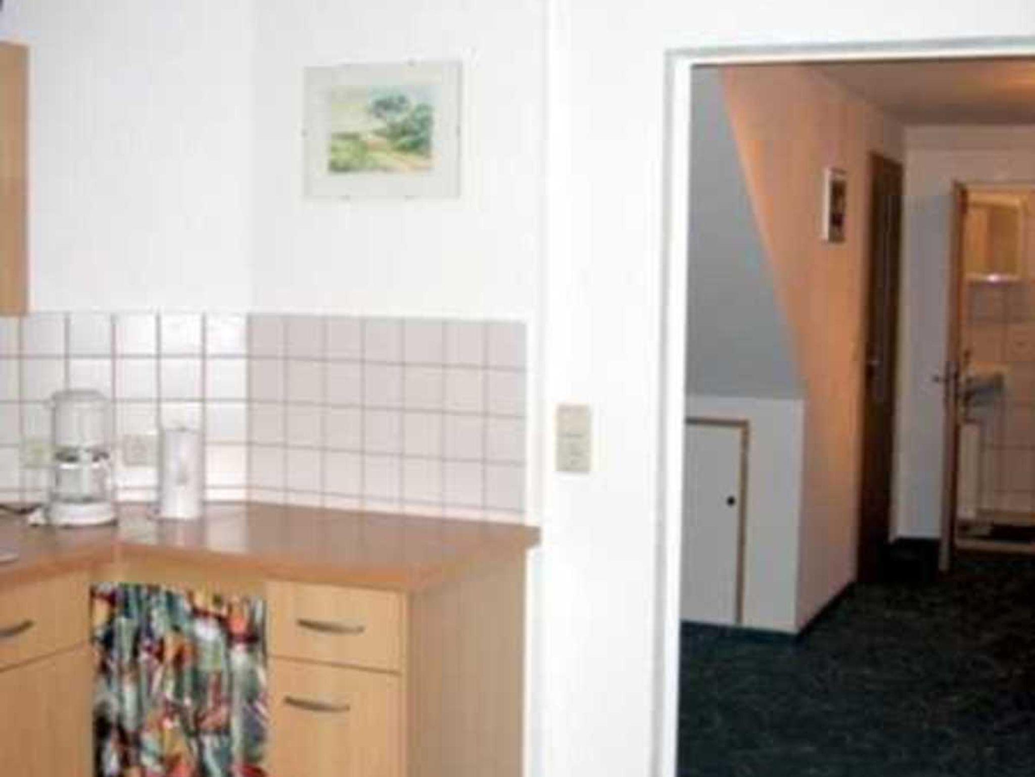 Die Ferienwohnung (48 m²) ist modern eingerichtet. Im Eingangsbereich befindet sich eine Wohnküche mit integrierter Essecke. Im Schlafraum bietet neben dem Doppelbett eine ausziehbare Couch Platz für die 3. Person (1 Aufbettung). Die 2. Aufbettung findet Platz im Flurbereich (Gästebett).