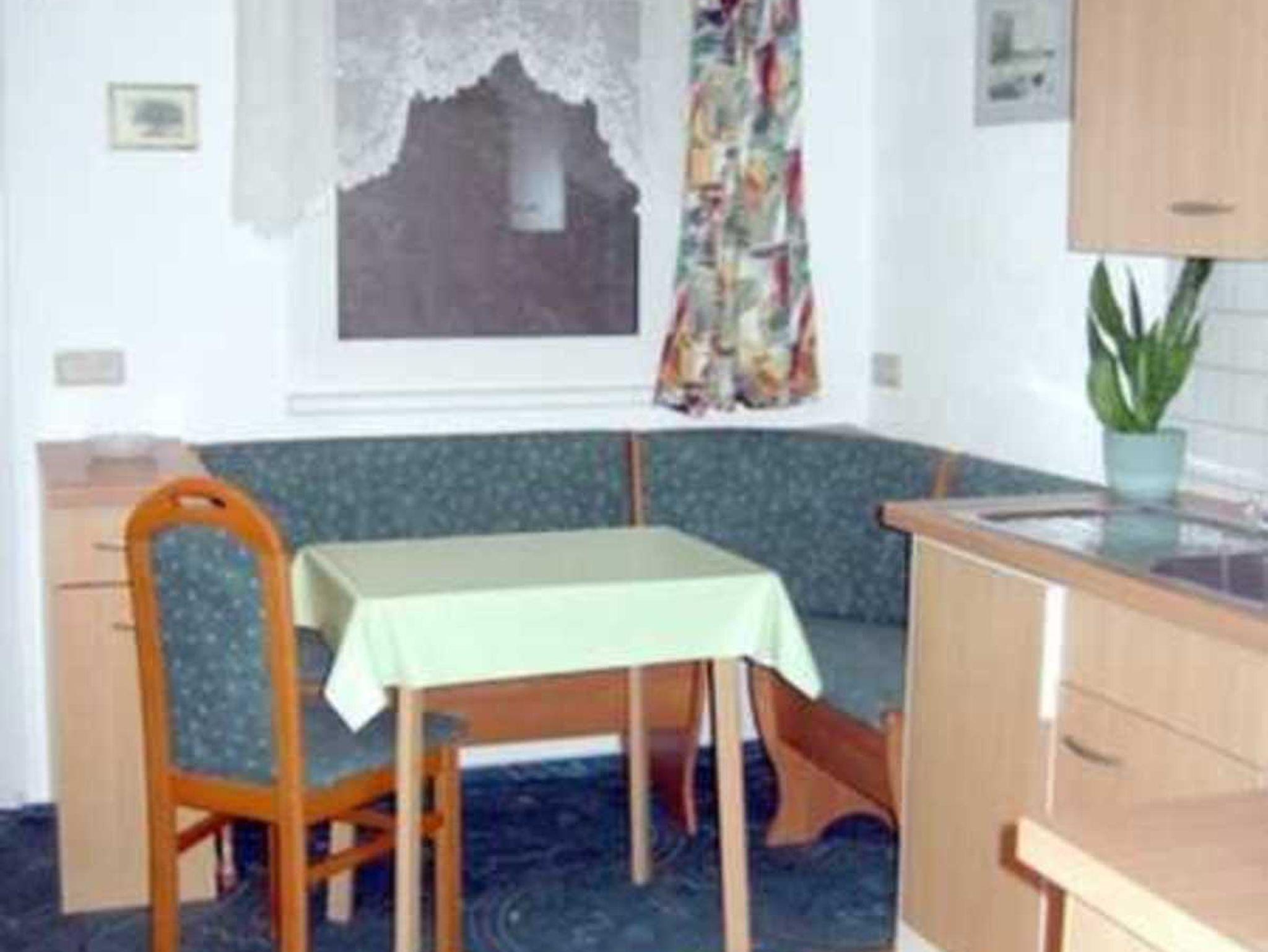 • 1 Wohnküche im Eingangsbereich mit Essecke sowie Kaffeemaschine, Wasserkocher, Toaster