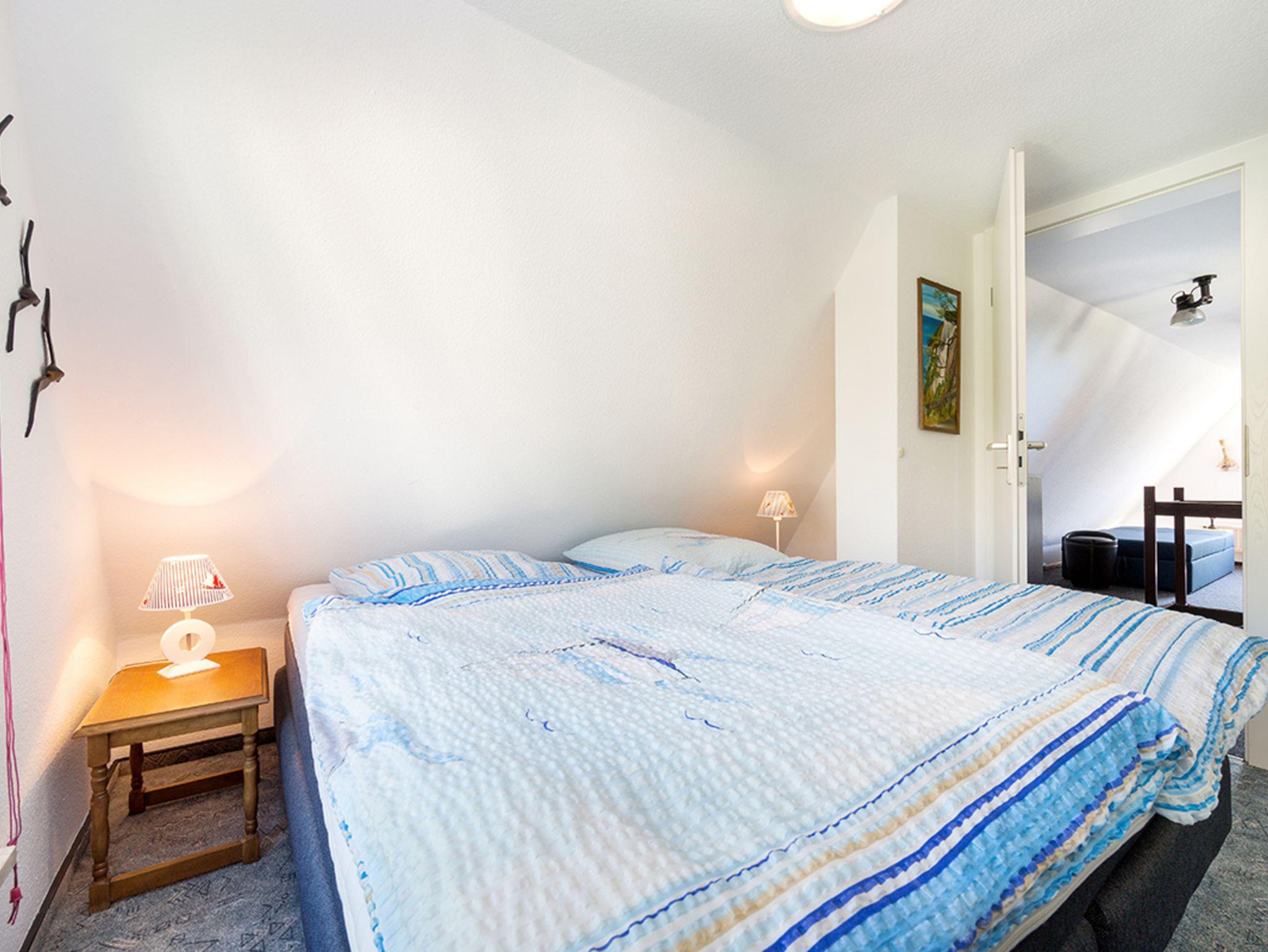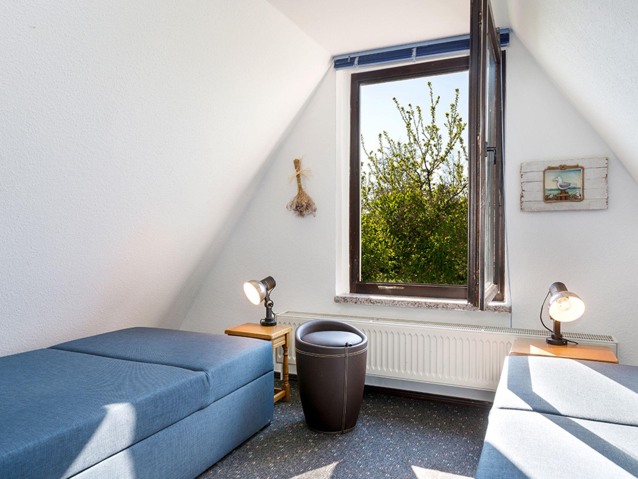 Obergeschoss: großes Schlafzimmer (offener Wendeltreppenzugang) mit zusammenschiebbaren Einzelliegen 0,80 x 2,00 m (Boxspringqualität), Schrank, Durchgang ins kleine Schlafzimmer -