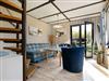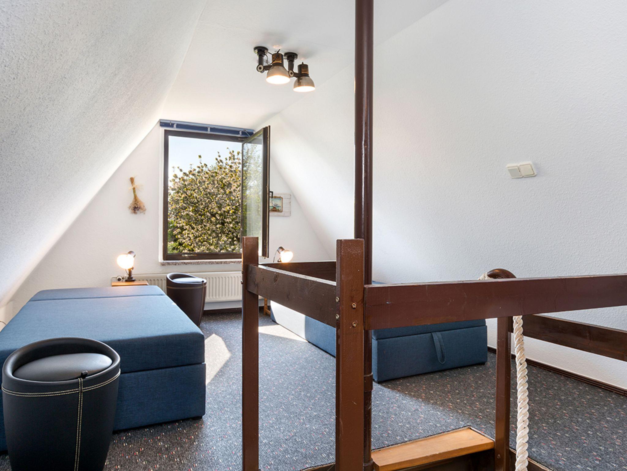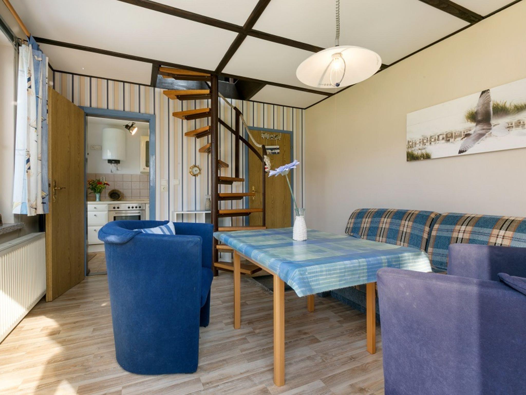Maritim und modern möbliertes 2 Etagen-Ferienhaus (45 m²) mit 2 Sonnenterrassen und umgeben von alten Obstbäumen auf großem Gartengrundstück. Für 1 - 4 Pers. (1 Aufbettung 12,50 €/Nacht) - bei Unterbelegung (nur 1 Pers. 12,50 €/Abschlag pro Tag) Bitte beachten: schmale Wendeltreppe ins Obergeschoss!