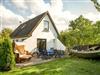 Maritim gestaltete Fischerhütte auf großem Gartengrundstück nahe Bergen auf Rügen mit Terrasse, Grill und Fahrrädern.